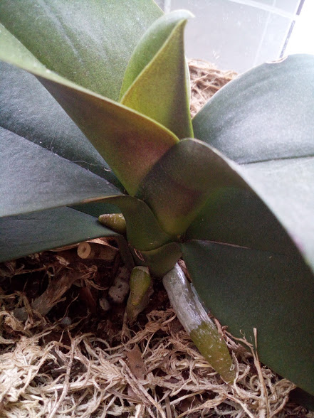 Вторая орхидея вырастила новый лист и растит новый цветонос. Старые цветоносы засохли и после этого я их срезала