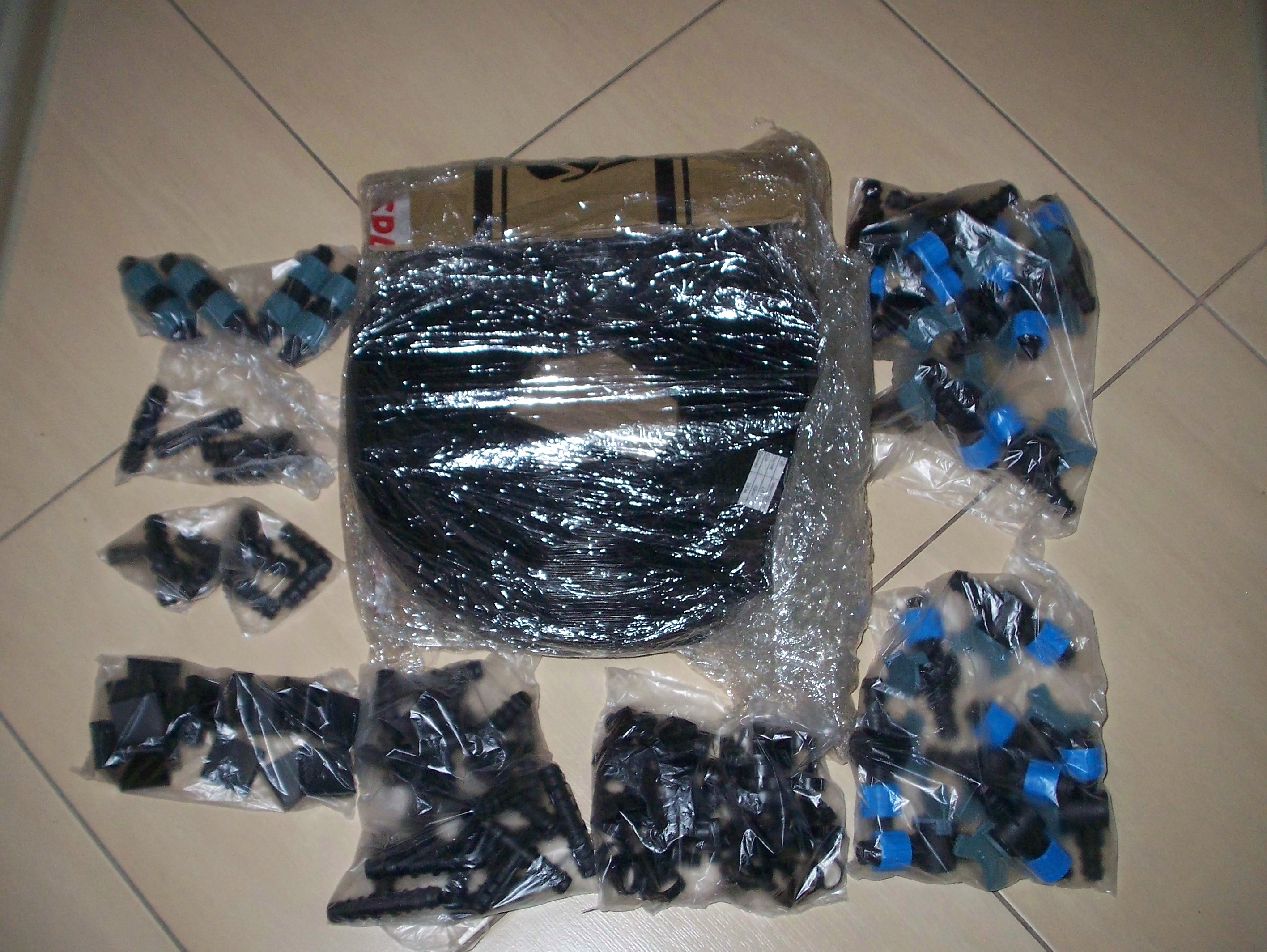 100 метров ленты капельной и комплект фитингов на 240 точек полива.