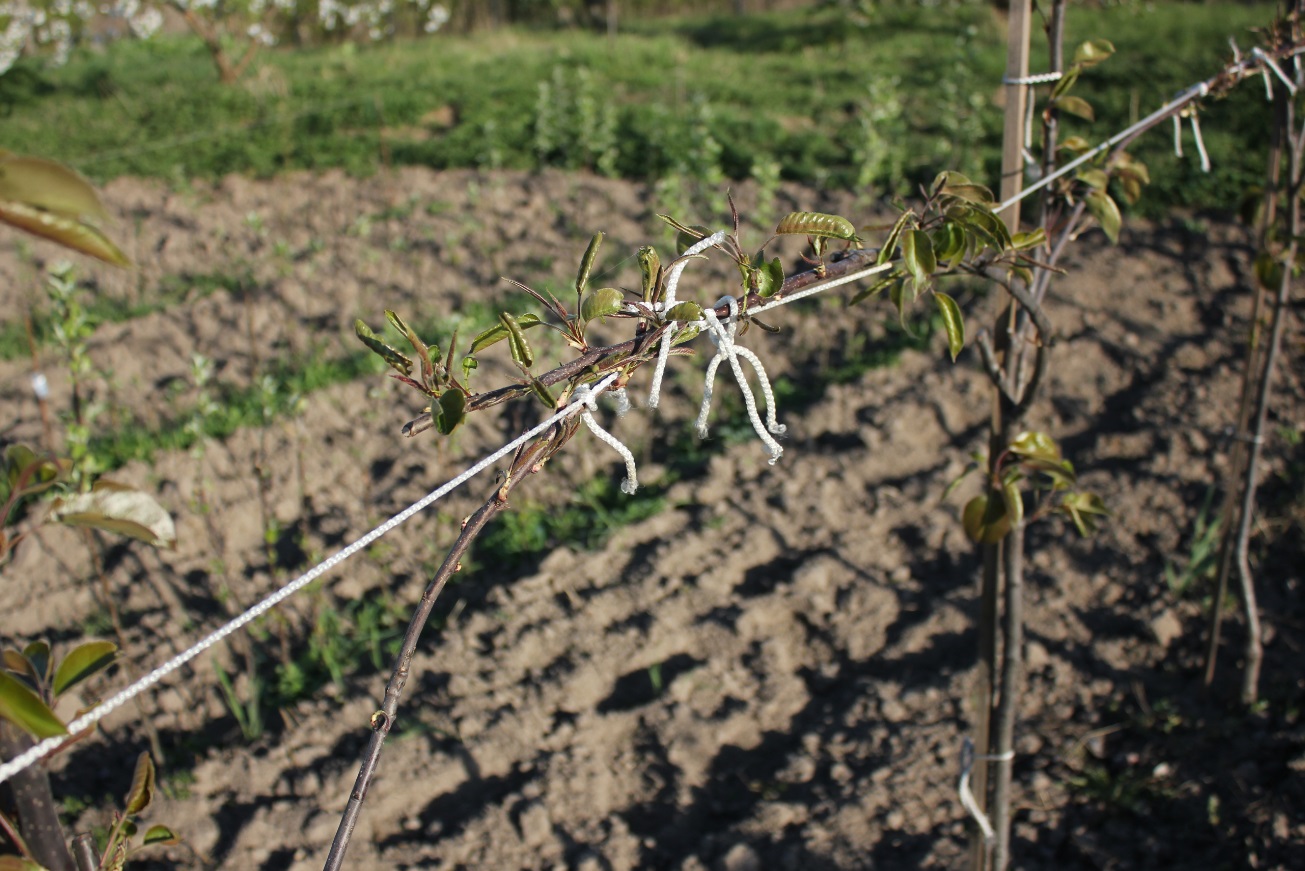 Результат привязки сорта Бр. Красавица к шпалере. Ветки закладывают плодовые образования.