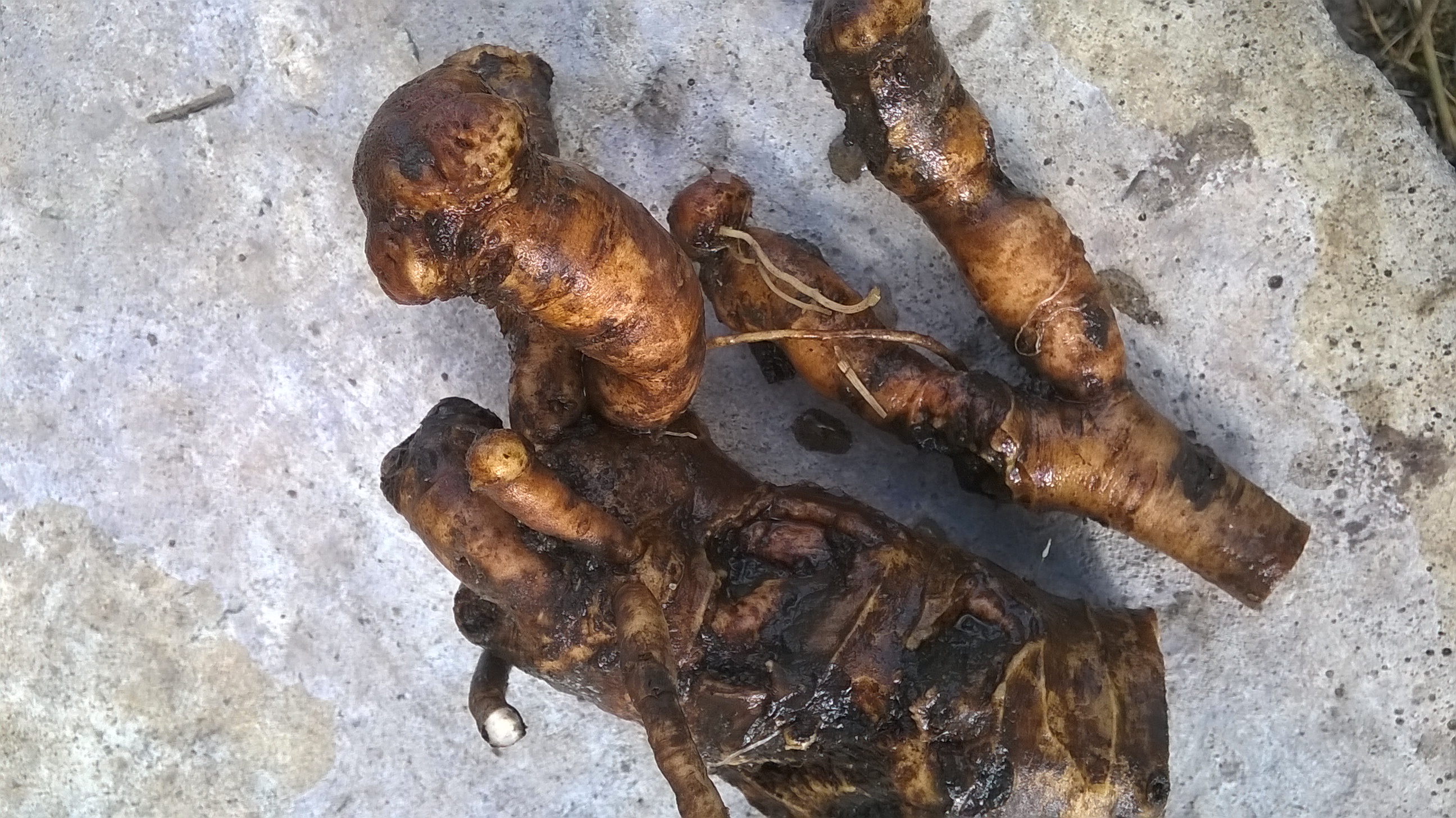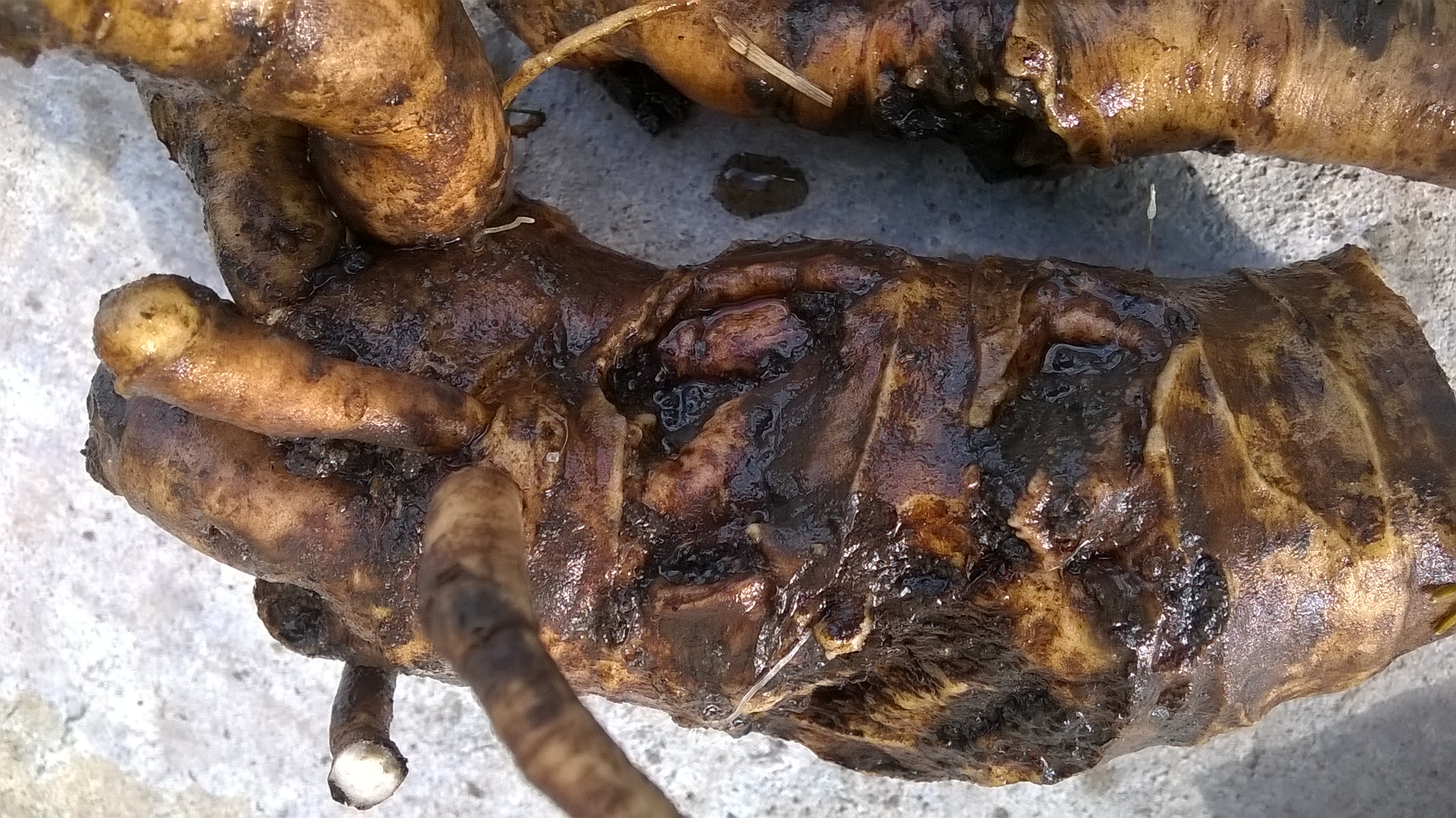 Я его почистила, подержала не помню уже в чем(максим?), обваляла в золе и снова закопала. Он кстати распался на 2 части при чистке. Там были малюсенькие почки пониже. Поливала все лето. В этом году не вышел опять, я ждала-ждала и с неделю назад не выдержала, зачем разрыла, и сама не знаю. Вот что там было