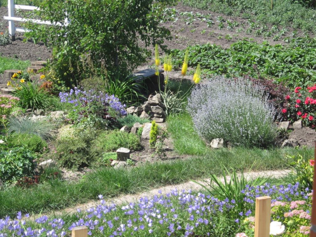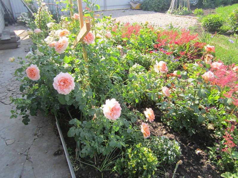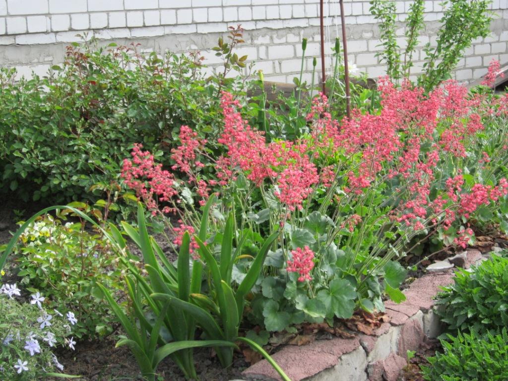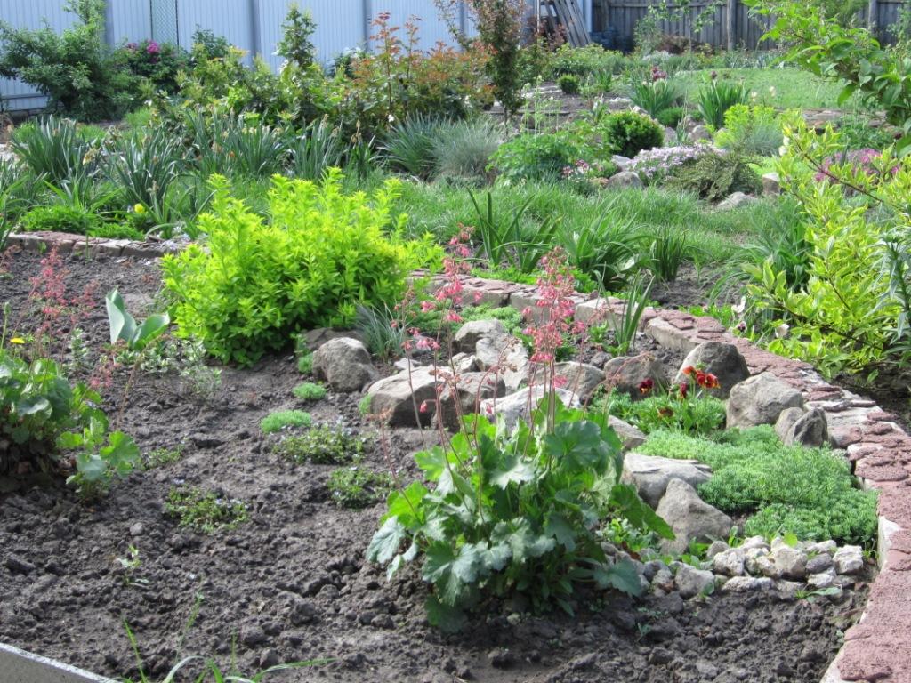 И что конкретно там уже растёт, кроме роз, ириса, чего-то голубенького низкого типа карпатского колокольчика и шикарнейших гейхер (удивительно, как они на солнцепёке такие красивущие?)