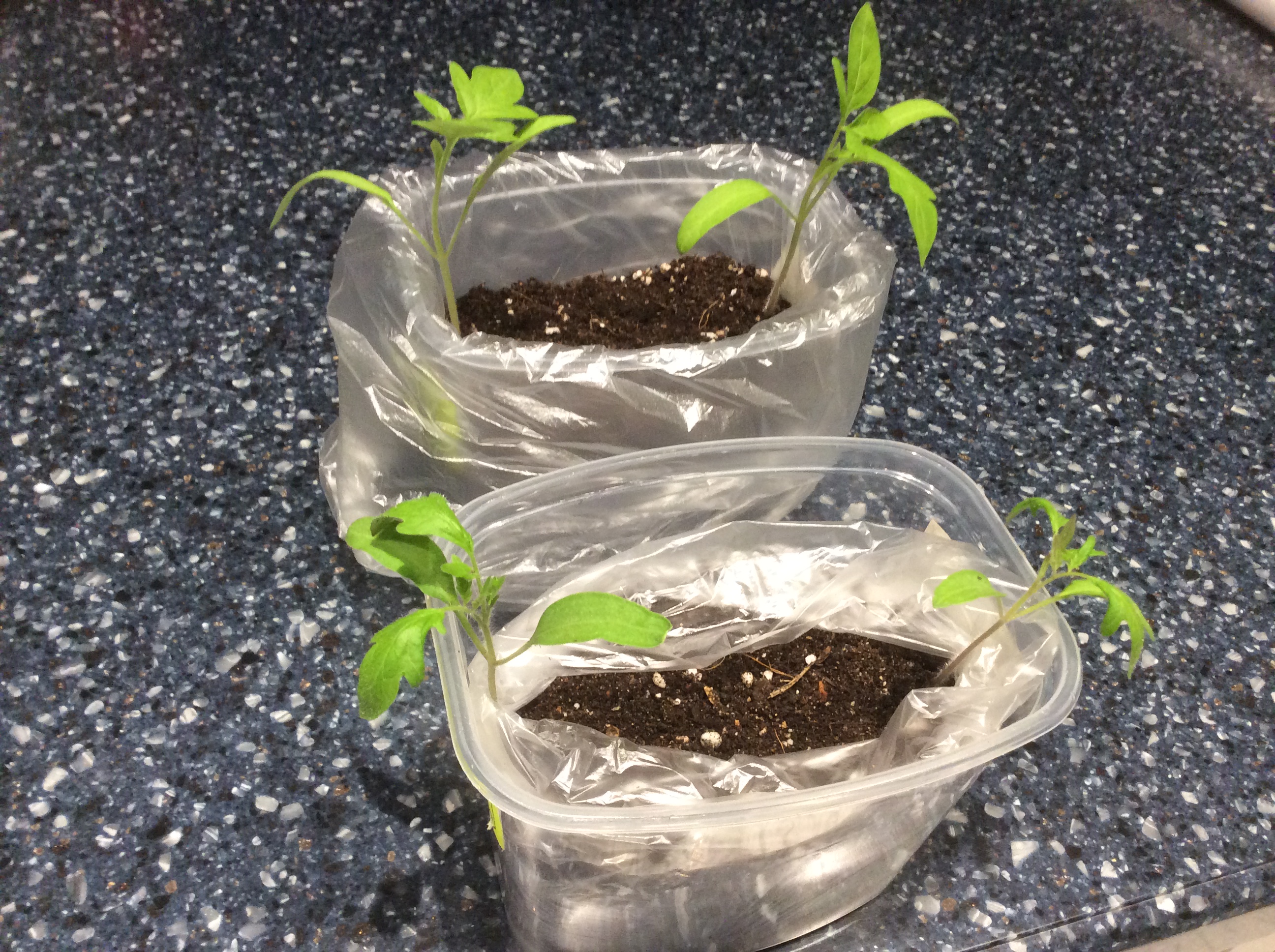 Я уже писала, что у меня в горшке с цветком, вырос томат. Так я макушку ему отрезала, она дала корни, я его посадила и в теплицу вынесла. Без укрытия и обогрева. Сегодня днем пошла, а он сидит себе нормально так! Посмотрим!