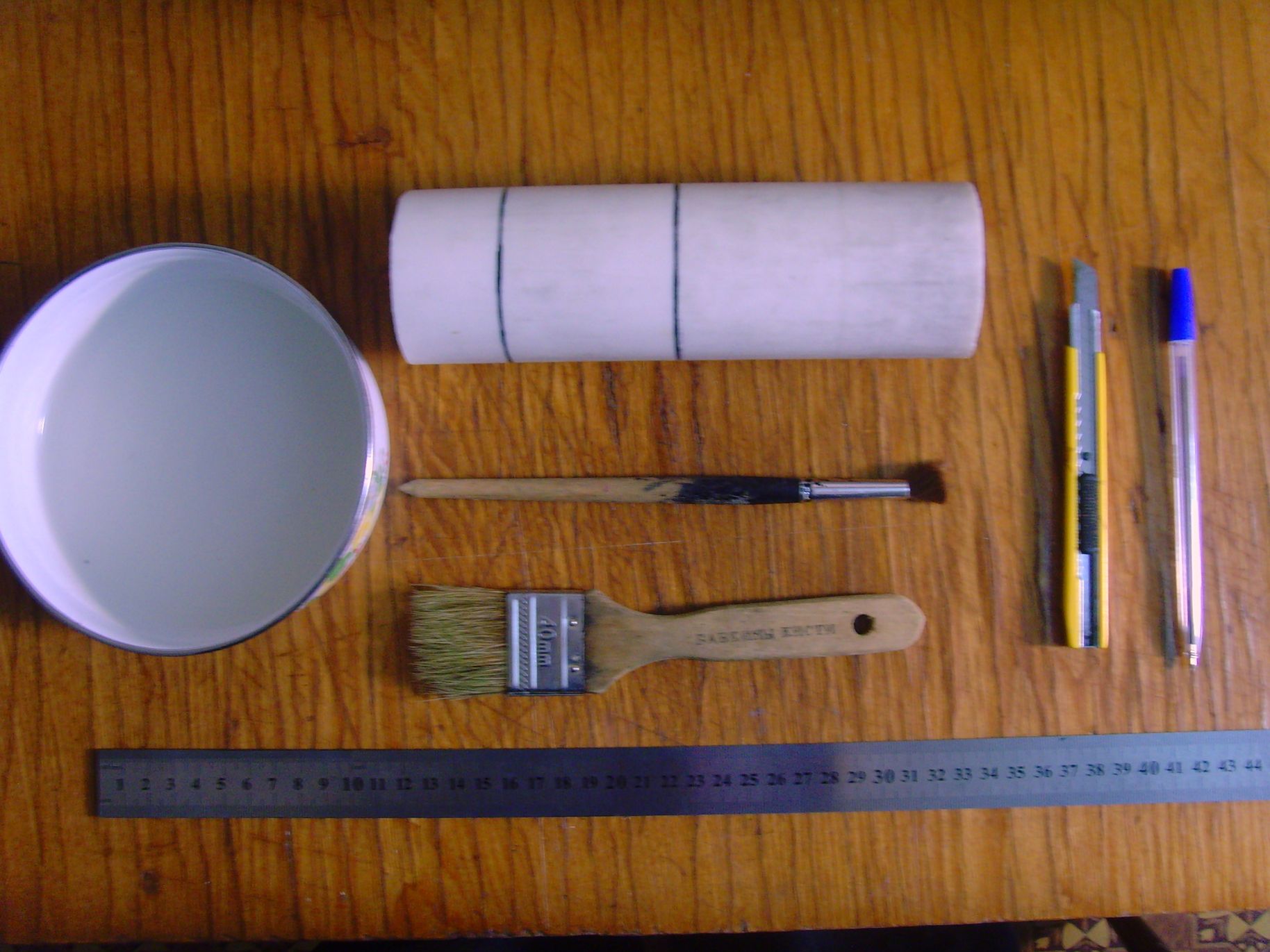Самое главное, что нам понадобиться это небольшой кусок полипропиленовой трубы (в данном случае мной использована труба на 63 мм – внешний диаметр). На ней перманентным маркером делаем разметку соответственно предполагаемой высоте стаканчиков (у меня 10.5 см).