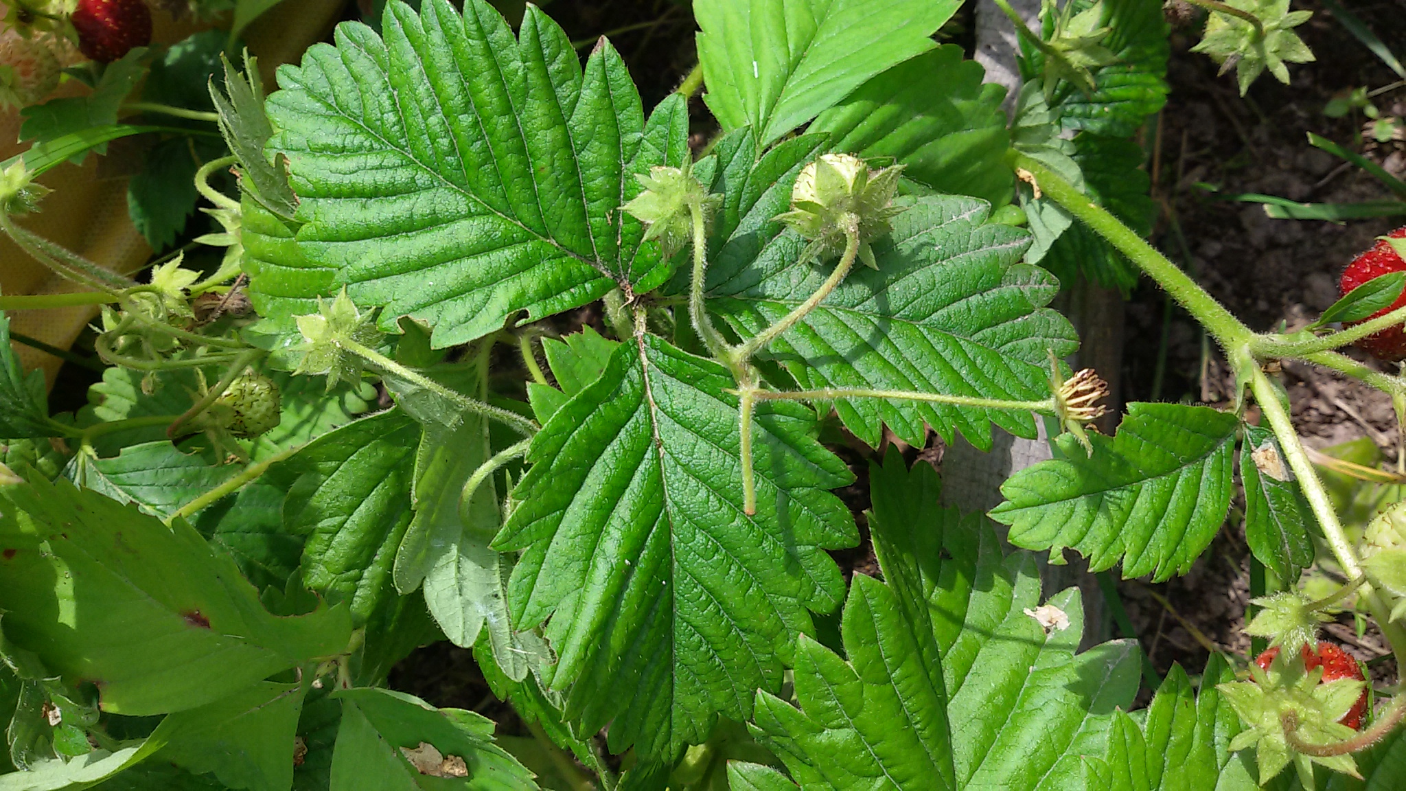 2 листа земклуники разных сортов (Купчиха и "неизвестная") + 1 лист клубники Миланская. Думаю, что догадаться не составит труда какой из них Миланская.