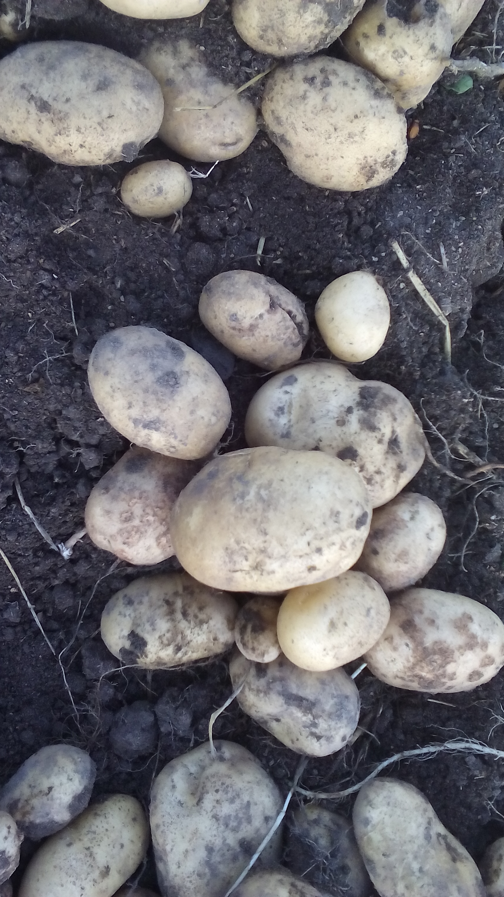 Сочувствую всем у кого не урожай. Этот сезон действительно и для меня стал самым тяжёлым. Вчера выкопал последние 25 метров борозды. Картофель в среднем помельче уродился в этом году. Мои затраты на НУМ полностью себя оправдали. В июне я его на перцы перекинул и огурцы. Уражайность тоже порадовала, хоть и без рекордов. Сегодня посадил десяток кустиков - пророщенных клубней с маленькими клубеньками. Может что и вырастет.