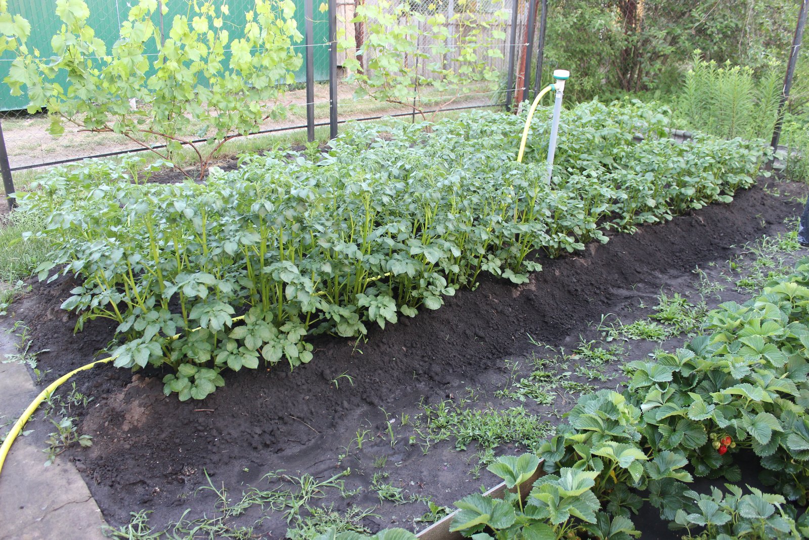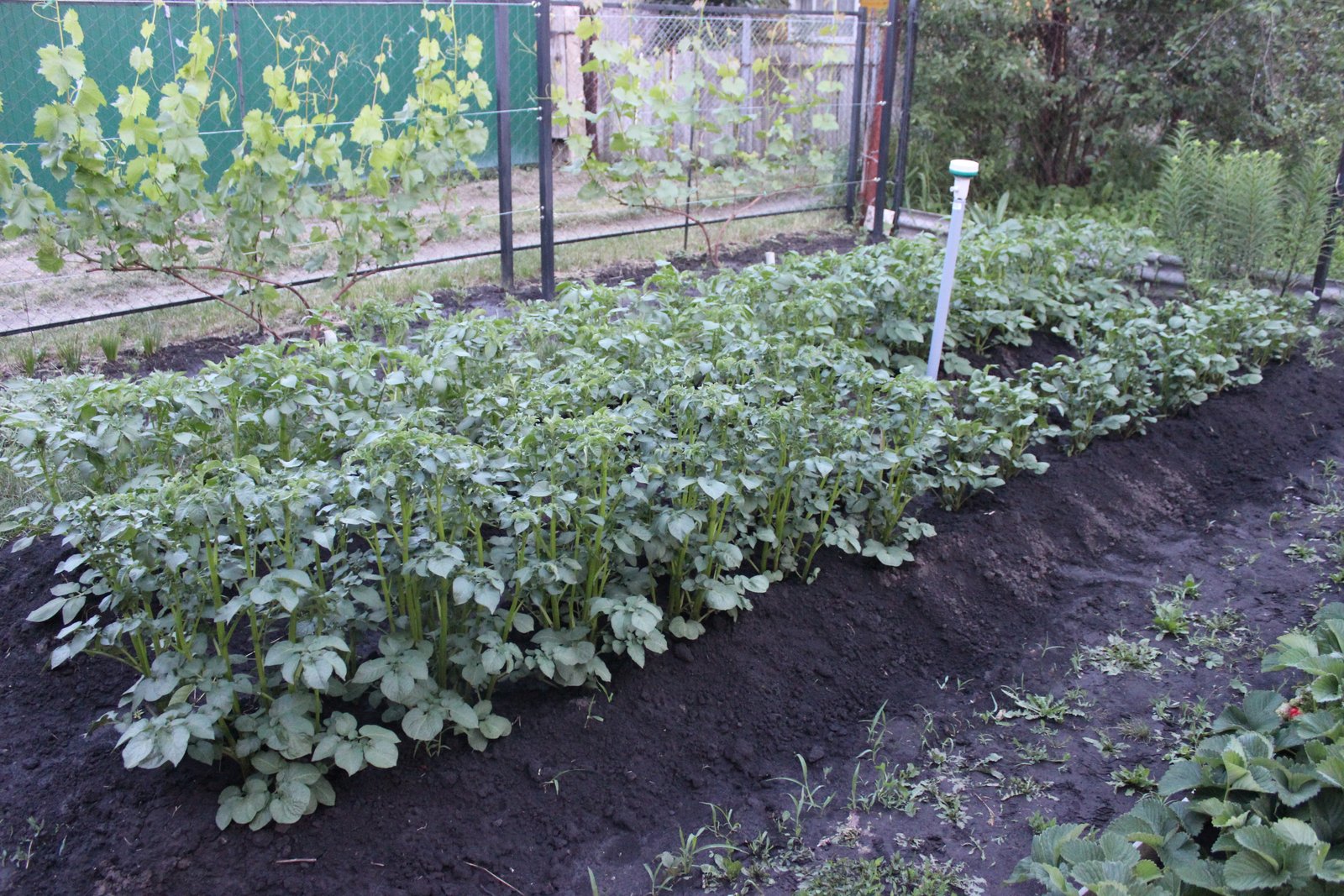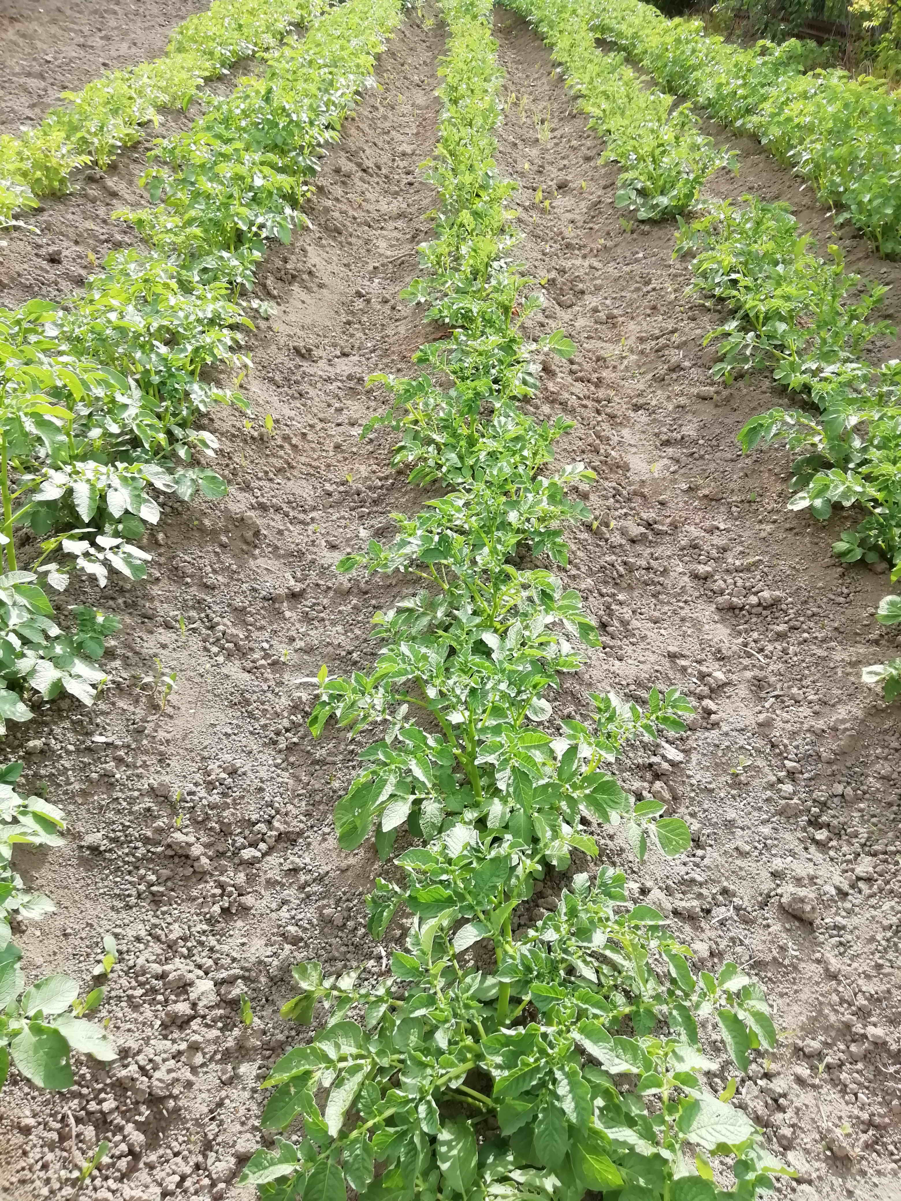 . Картошка приподнялась, начала обретать цвет. Если ближайшие три недели продержится сырость, урожай, хоть и не рекордный, вполне может быть.