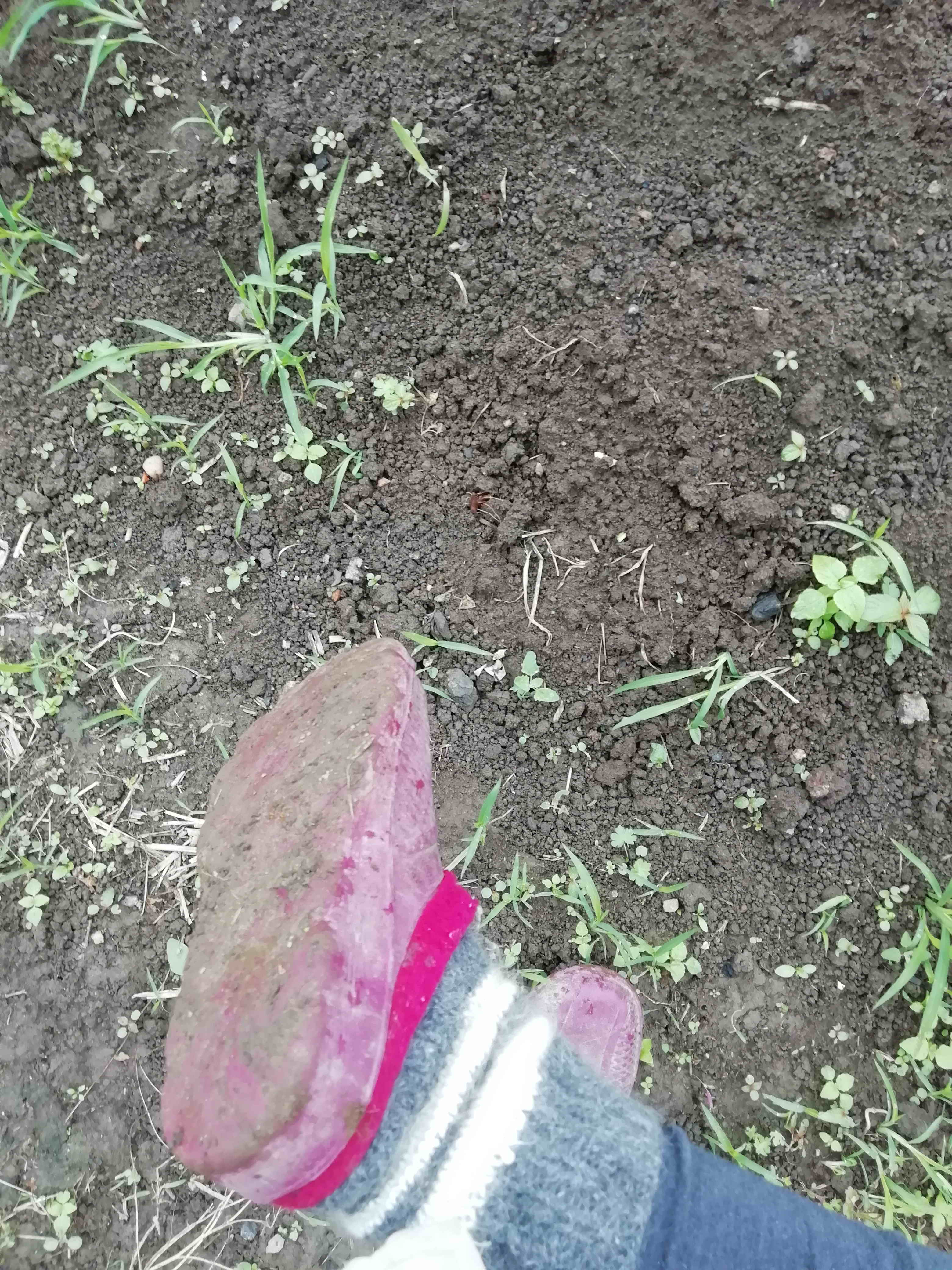 Мой всходит, лидирует Инара, несмотря на то что половинки большинство всё равно по несколько стеблей. Дождь землю хорошо пролил, сам дождь не видел, но лужицы вижу набирались в ямках.
