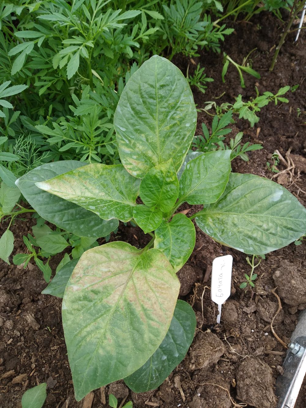 Здравствуйте! Подскажите, пожалуйста, чем можно помочь перцу (фото ниже).