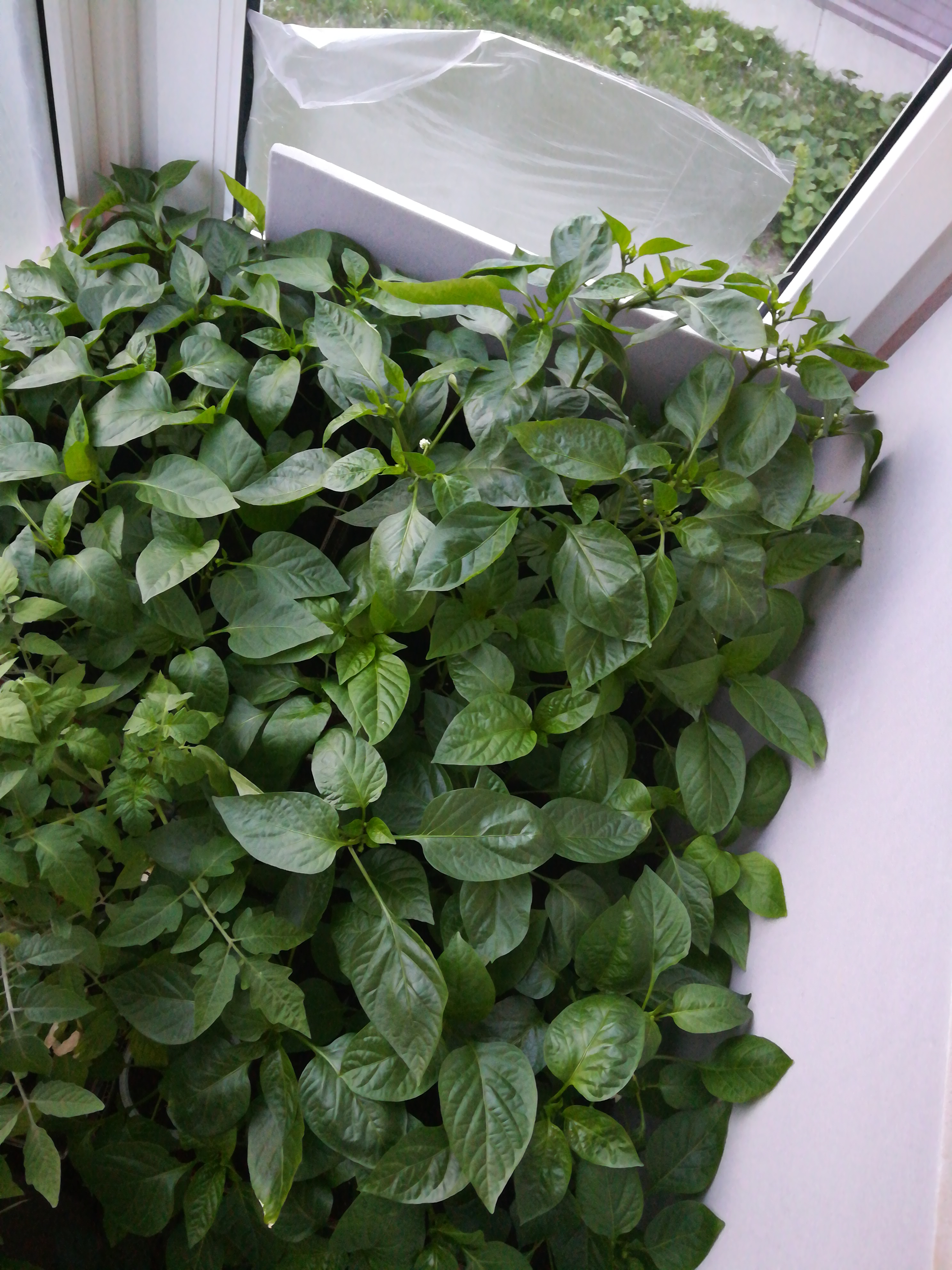 Засада у меня с перцами, никак не раскачаю, видимо, корни "простужены" были, думаю так. Как по башке хлопнули, куполом растут, а вверх никак! Зато там, в шапке, цветут