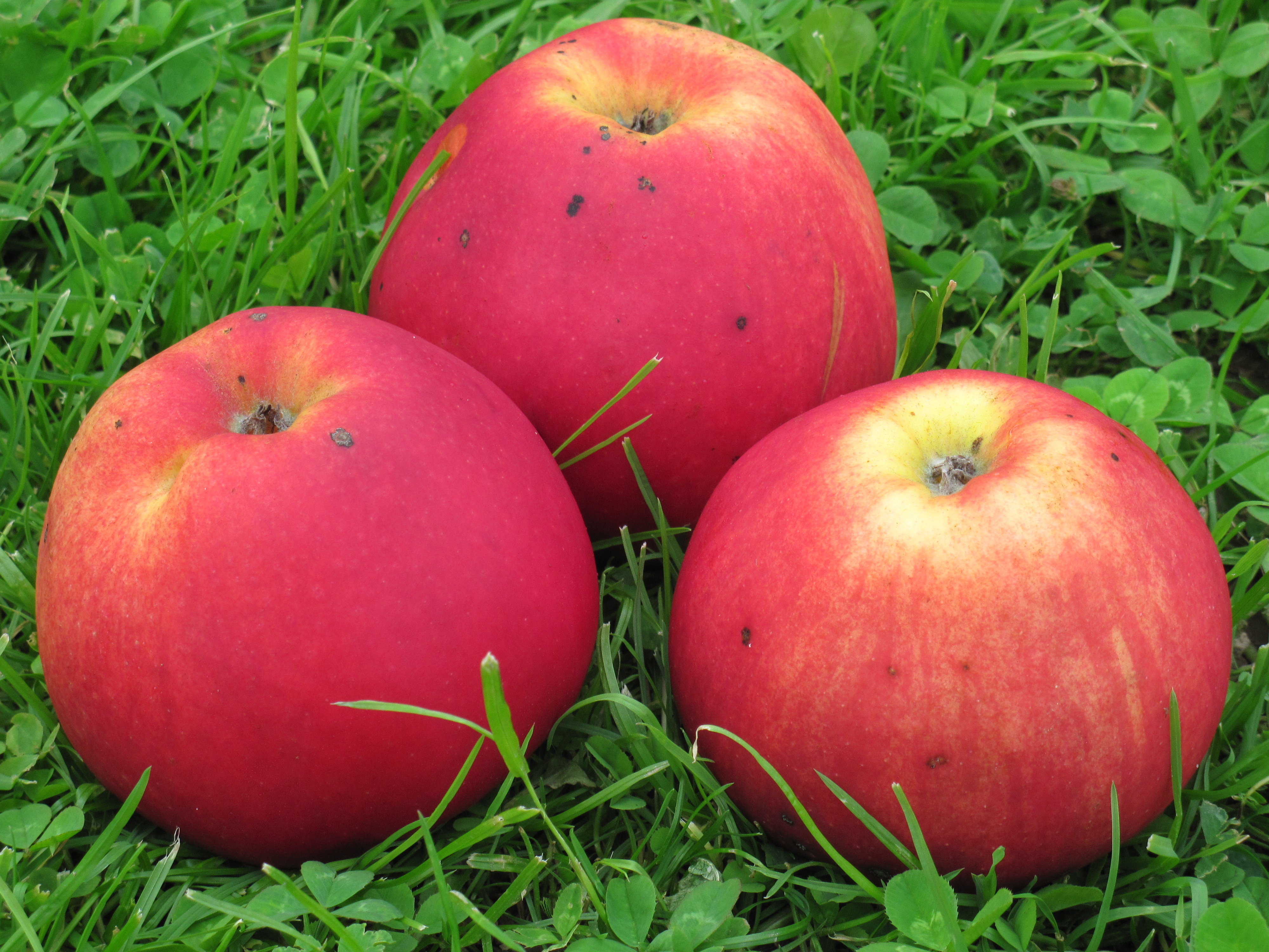 4. Джонагоред (Ред Джонапринц, Горец). Яркоокрашенный клон Джонаголда. Полное соответствие сорту еще не установлено, черенок с такой биркой был привит в крону два года назад. Признаки парши на плодах и листьях практически отсутствуют:
