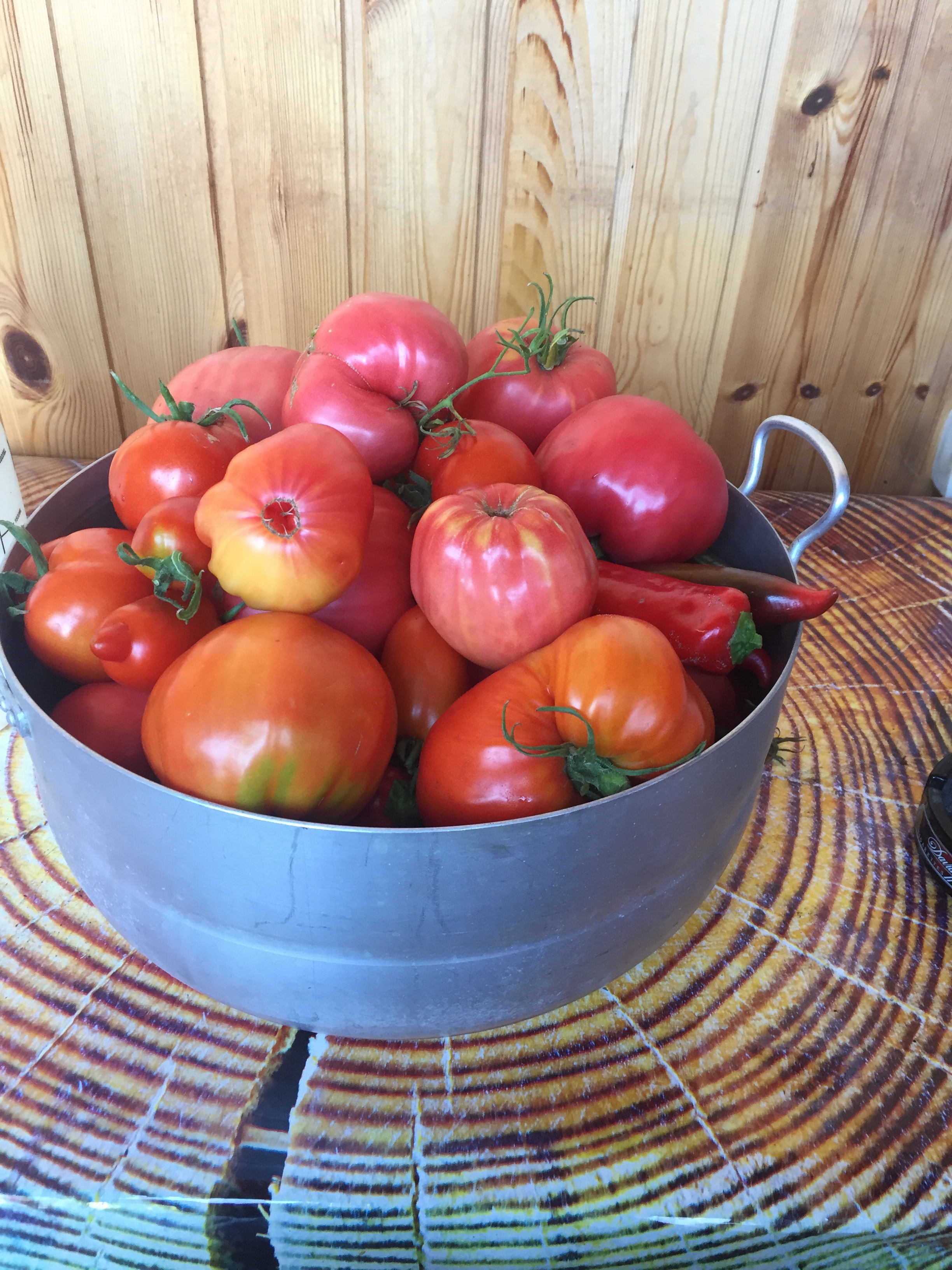 Вот как то так у меня получается в этом году. Большая часть ещё зелёная. Собираю томаты в полной зрелости.