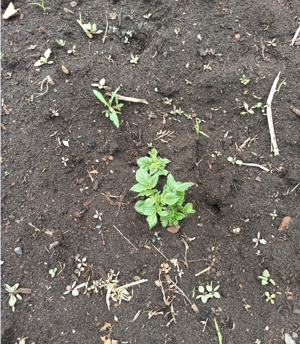 Ещё крайне неудобно, когда грядка картофель-по картофелю и появляются всходы прошлогодней, попробуй отличи от посаженной, особенно если в том же ряду.