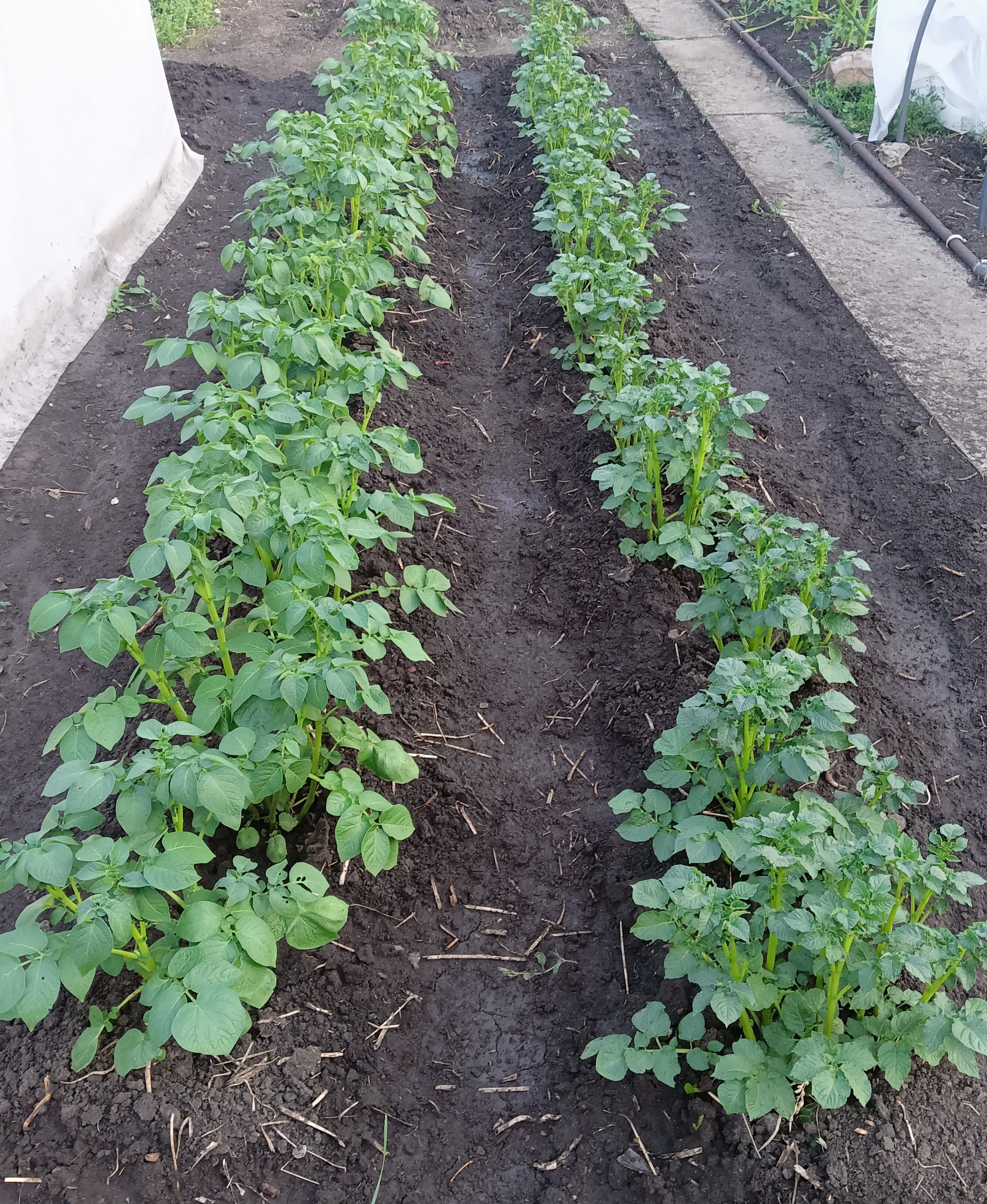 еще не видать. Также не видать БР и Скарб еле-еле вылез. Ранние сорта сразу полноценно окучивал, вытягиваются на глазах. Радует отсутствие сорняков, культивировал и садил одновременно, сбил все вылезшие при поздней посадке. Придавив жабу, начинаю фиточистку. Ярко выраженные дохлые кустики ничего хорошего не дадут, а навредить могут