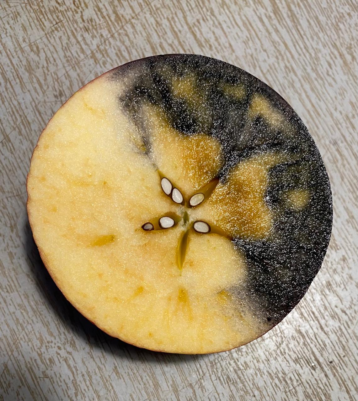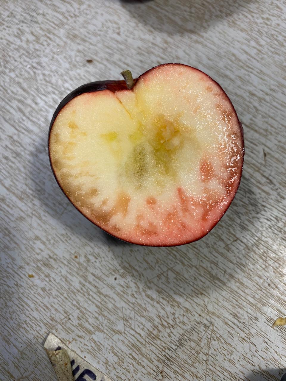Плод явно перезрел,товарный вид мякоти потерял, время лежки максимально сократилось.На рынок продавать уже не понесешь.Если бы вы были фермером, с такими методами определения времени сбора, вы бы давно обанкротились.Внизу фото моего ВП, сбор 17.08.24 , сочный, вкус очень хороший 15бр.В Х.Камере полежит еще не один месяц.