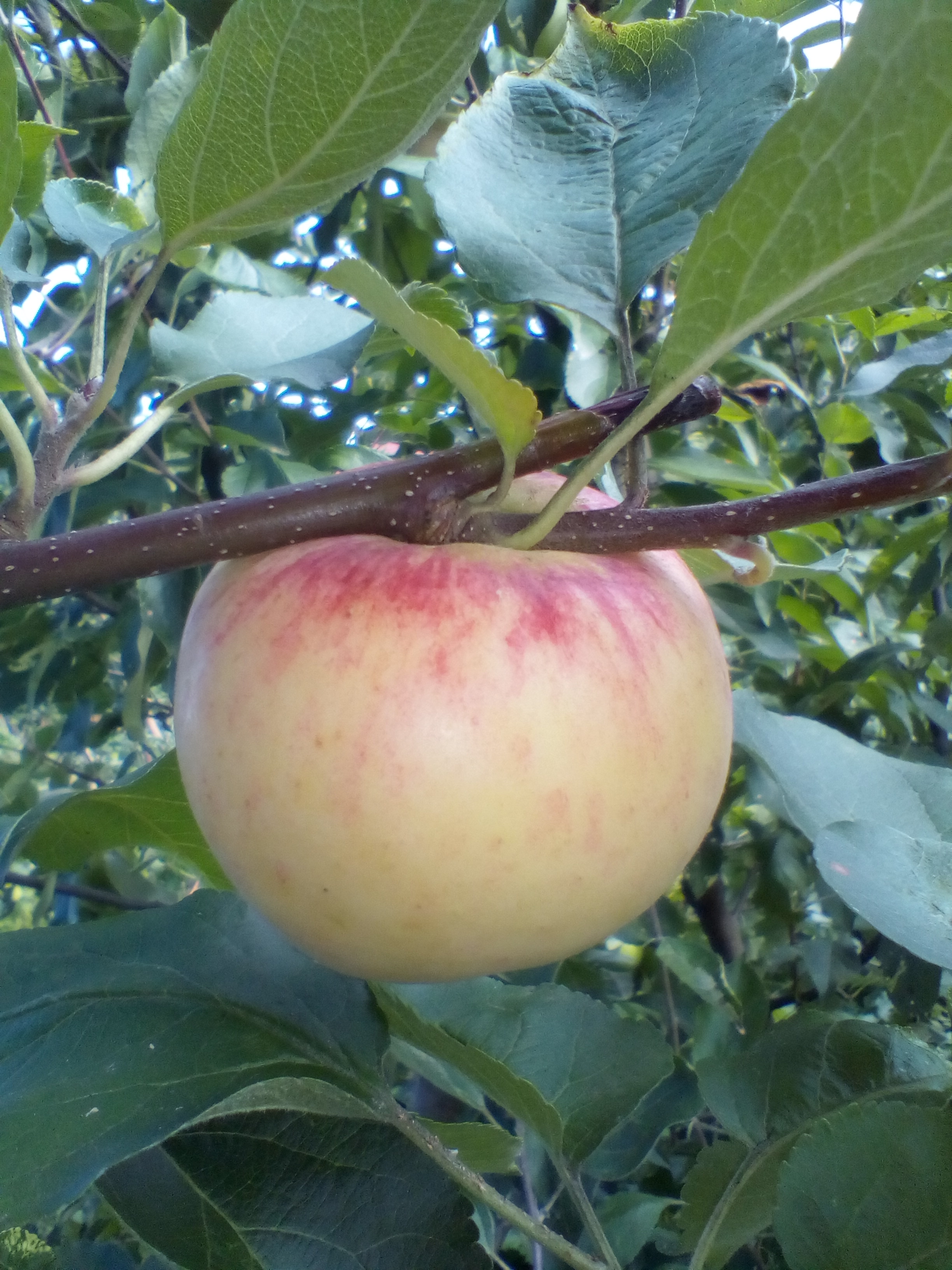 Яблоня покупалась в Совхозе Ленина лет 7-8 назад, под именем Брянское. Плодоносит первый год, завязалось 7 яблочек. Но что-то мне подсказывает, что это ни разу не Брянское. Фото сделала сегодня: