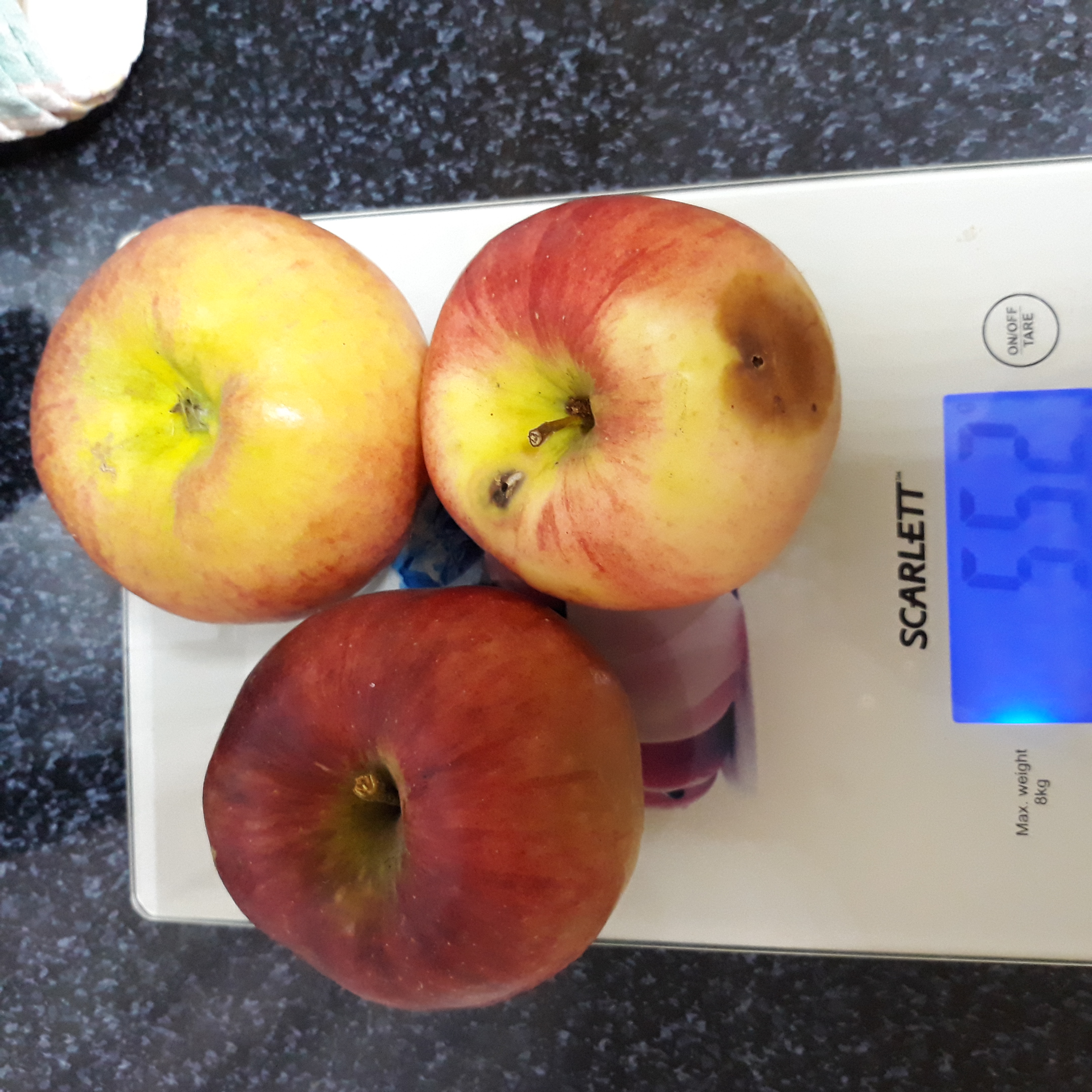 Василий, Сегодня,последние с дерева,перезрели,есть налив и кислят.Вес около 200гр,мелкое типичного окраса . 156гр.