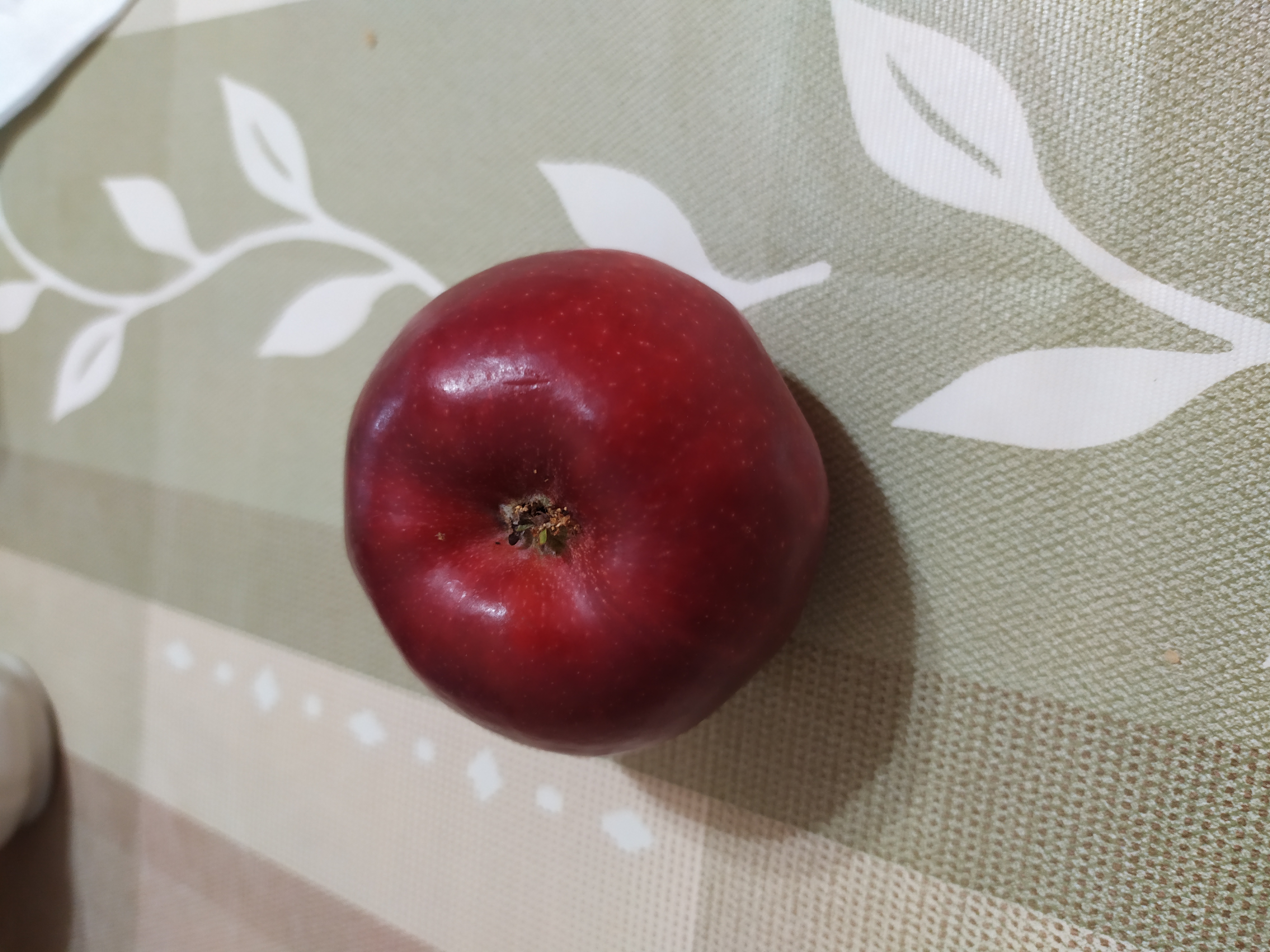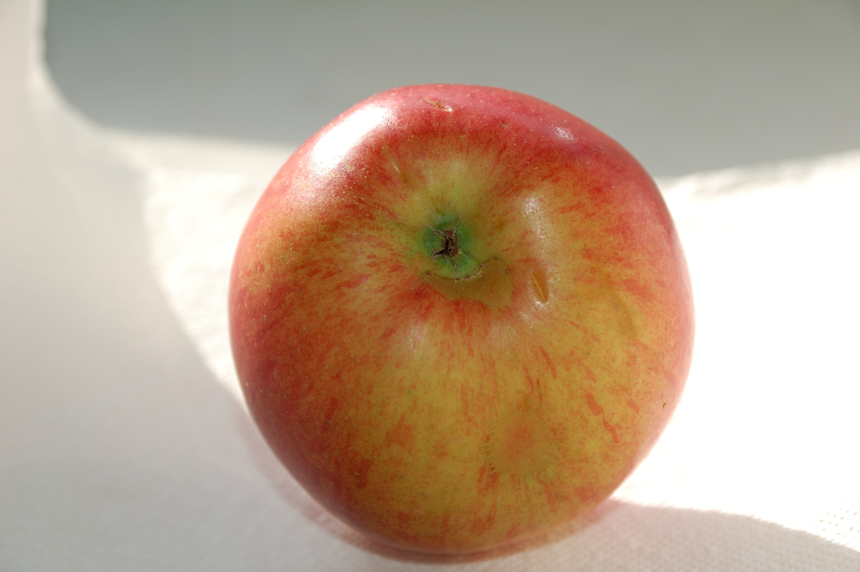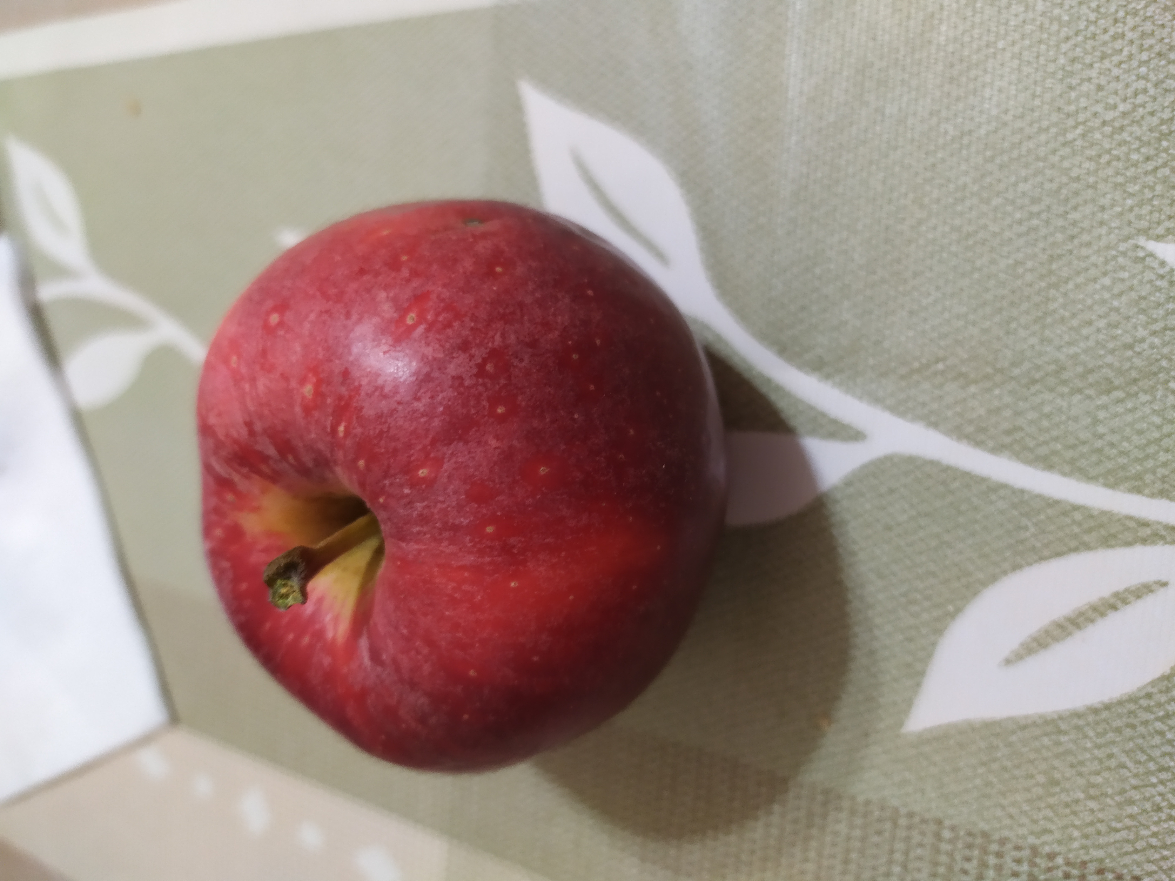 Угостили яблочком неизвестного сорта. Вкус описать сложно, но я попробую: сочный, но не сильно, то есть сок не брызгает, чувствуется, что яблоко видимо зимнее и ещё не дозрело, больше сладкое чем кислое, твёрдое. Может Беркутовское?