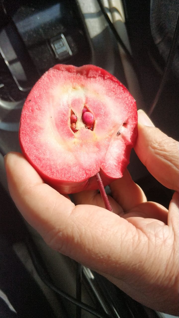 Сажалась как Уэлси.Мякоть средней плотности, очень сочная, колющаяся.Сейчас почти созрела, семена светлокоричневые.В августе некоторые яблоки скисали на ветке , наверно чем-то поврежденные.