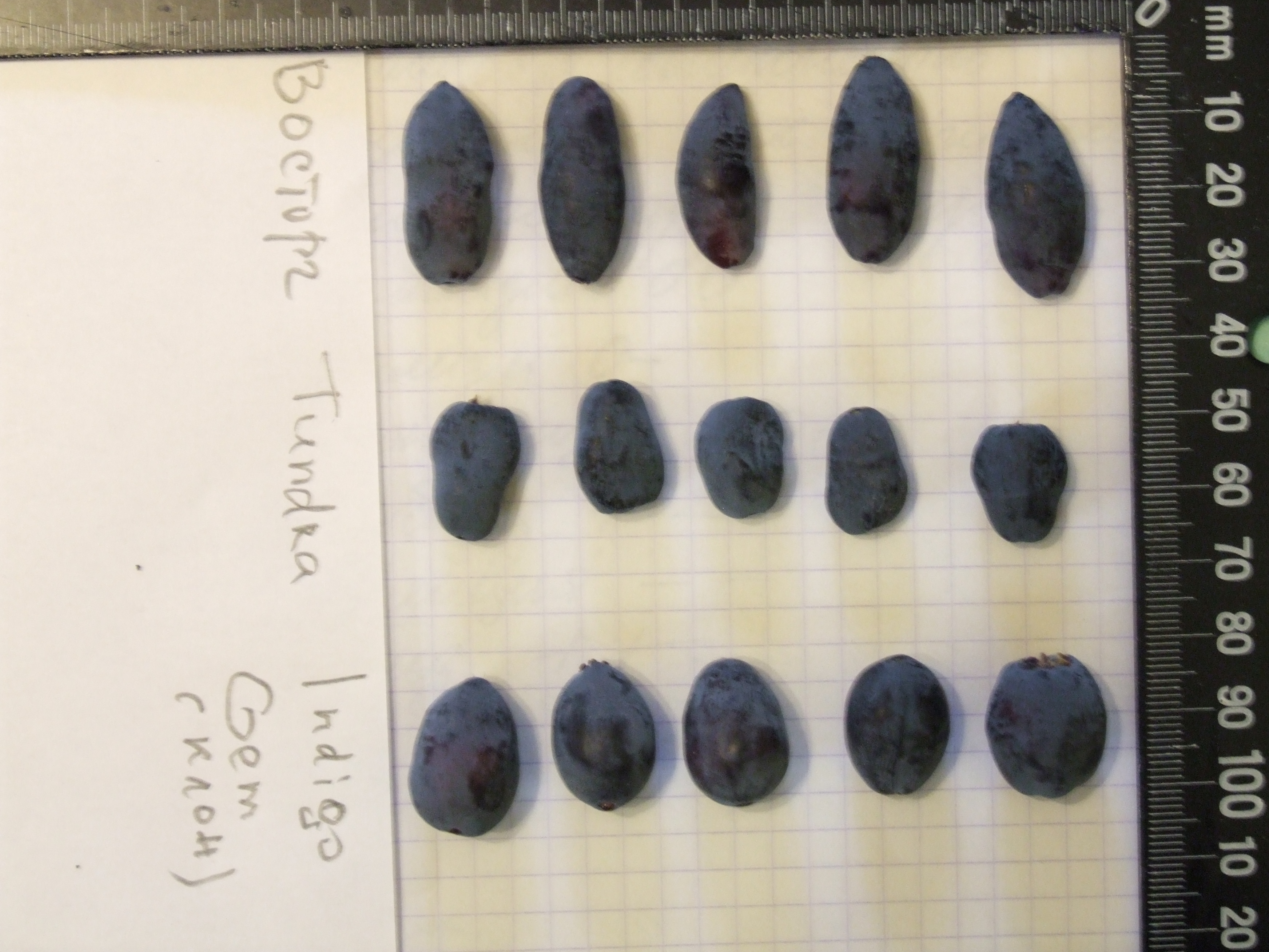 Как видим, в таблицах международного ассортимента есть сорта разных стран. Из наших - бакчарцы. Смотрим эволюцию ассортимента Кусибаба. Очевидно, что остались наиболее урожайные и хорошо растущие сорта,что совпадает и смоими наблюдениями. Теперь о канадцах. По моим субъективным оценка они выигрывают по мощи роста и урожайности. Растения выгляедят более стройными с сильными прямыми ветвями.Листва тоже смотрится более здоровой.Ягоды довольно плотные. Раннее плодоношение тоже в плюс. При этом ягоды достаточно большие даже в горшках Р9. Вот фотки плодов с купленных мною на овощной станции ТСХА саженцах Р9 цветущих сортов жимолости (фото 2015г) Индиго Джем Тундра Восторг Аврора