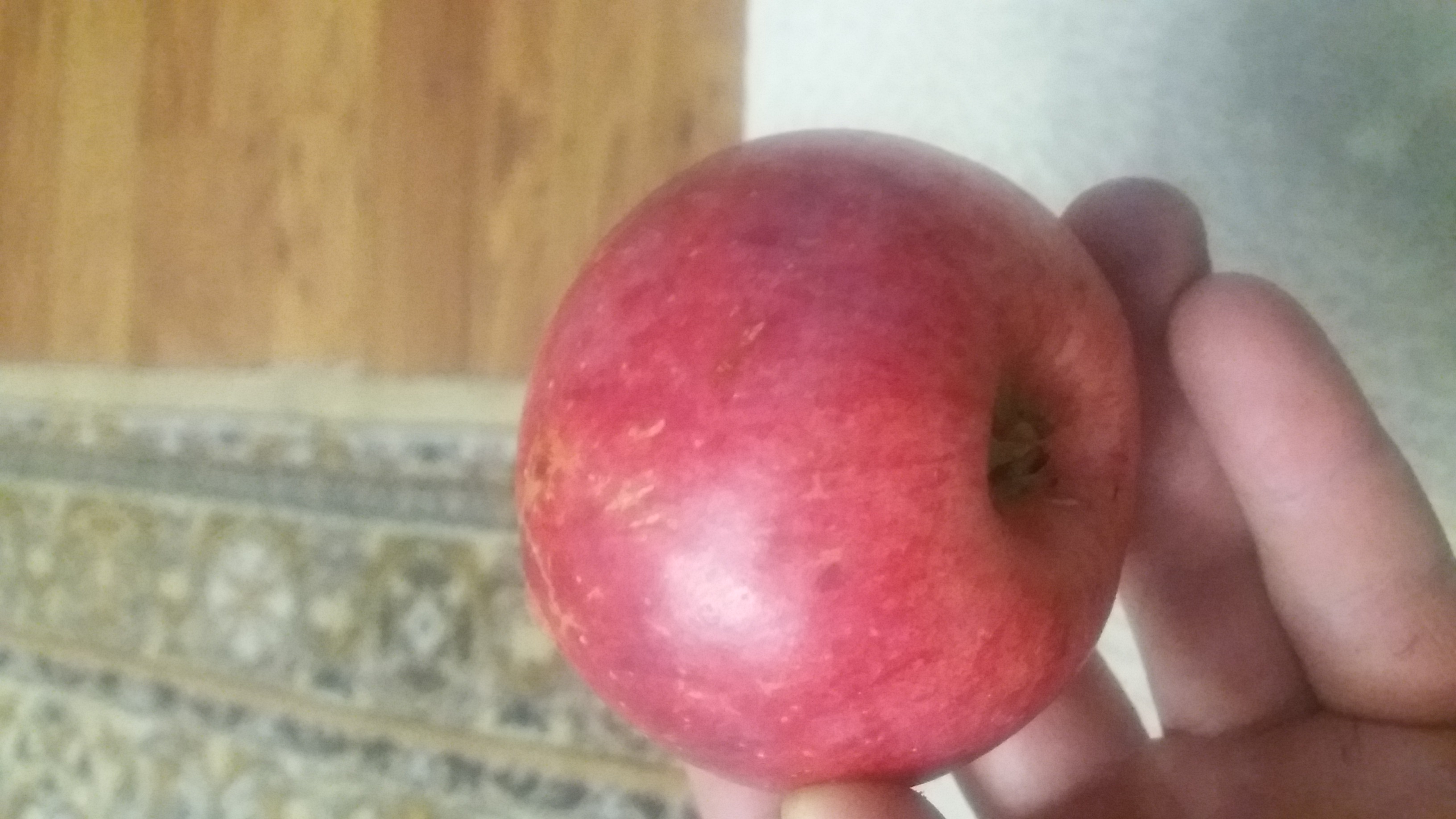 Лежали месяц в холодильнике. Достали попробовать и все быстро слопали. Одно успел отнять для фото. Очень вкусные: кисло-сладкие и сочные, мякоть плотная, но не скалывающаяся. Кислинка незначительная, не очень сладкие, - сказал бы "сбалансированный вкус". Все были примерно одинаковые ~ 200гр. Пара штук были с повреждением после падения, но ни малейшего следа порчи. Такое ощущение что могут еще несколько месяцев лежать.