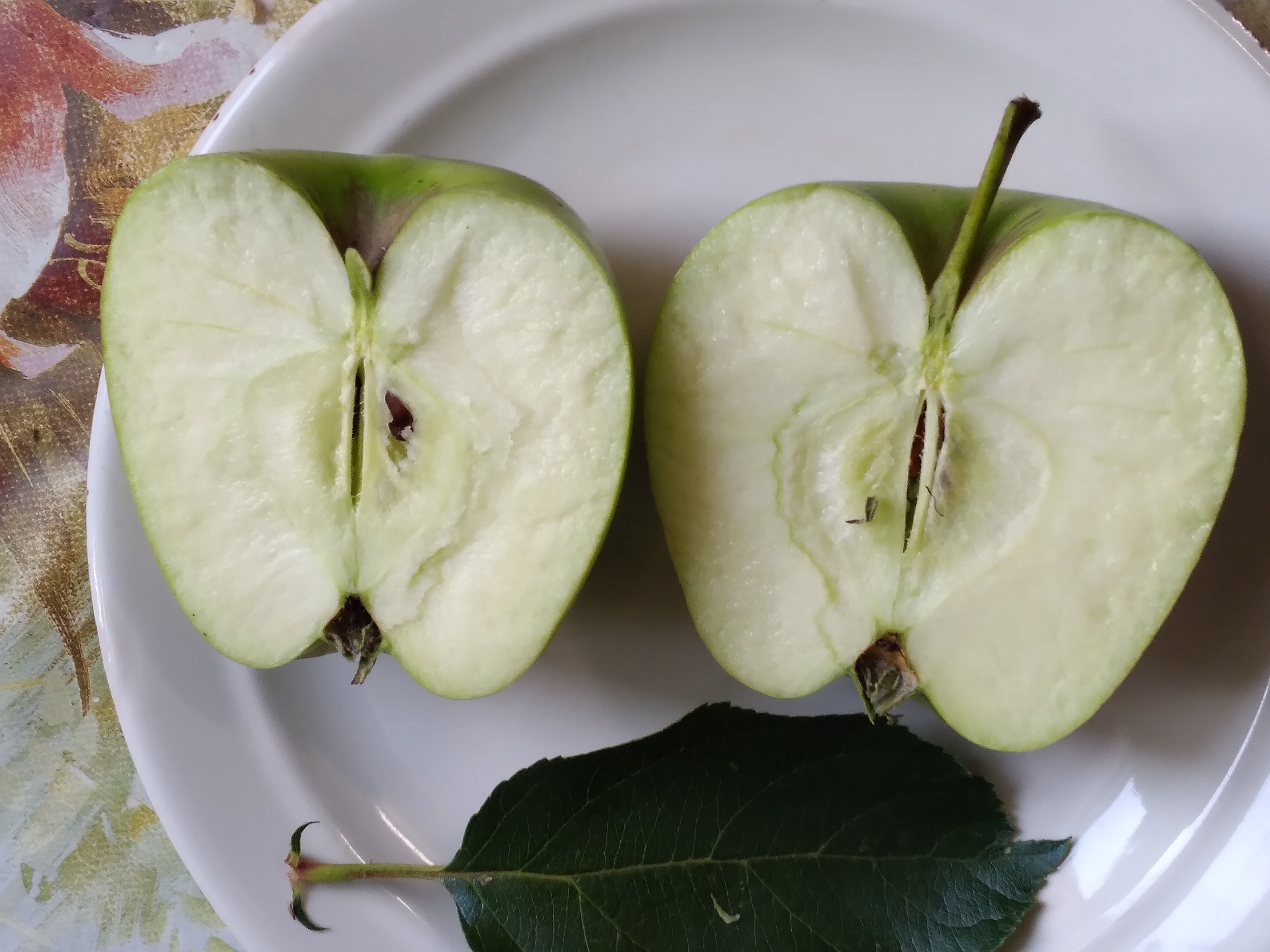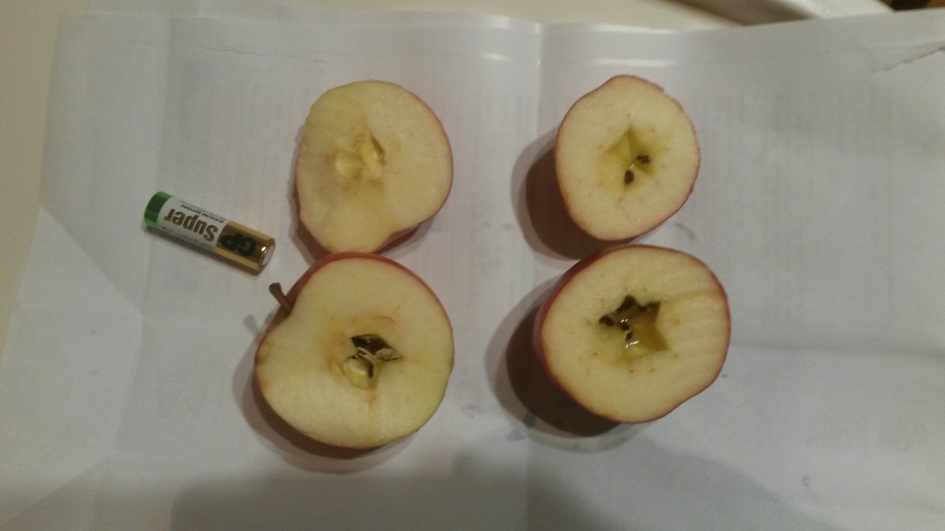 Сегодня одно из этих яблок разрезала, нижнее фото: