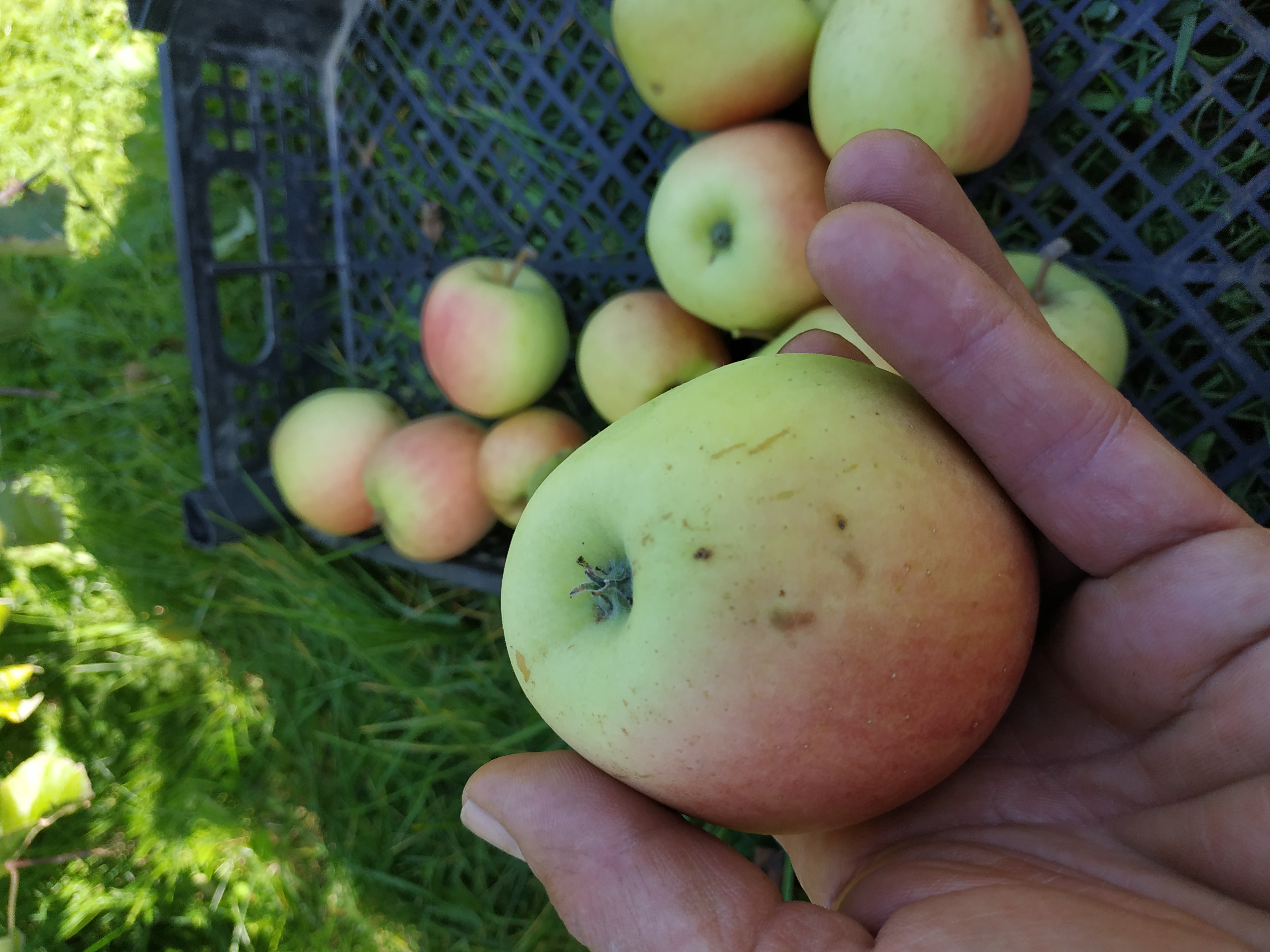 Яблоки подтвердили один и сортовых признаков - быструю осыпаемость. Через неделю после фото уже лежали на земле. В запарке сбора урожая были куда-то сложены. Теперь осталось их найти среди десятков новых для меня сортов и продегустировать