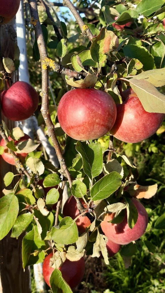 Вот так яблоки выглядели в августе на дереве. Про Орлик почитала. В принципе, похоже, да. Единственно, пишут, что яблоки осыпаются. А наши висят на дереве до последнего. Фото дерева целиком покажу вечером.