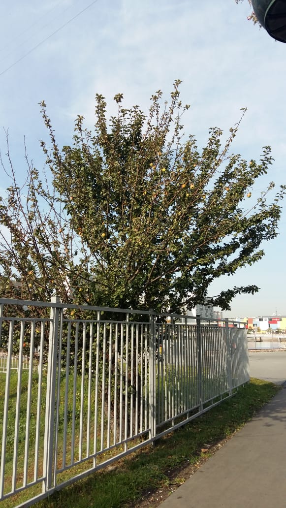 Добрый день! Растет яблоня за забором на очистых. Это в Братеево в Москве. Раньше здесь была деревня. Почему ее не срубили при строительстве очистных не знаю. Возможно кто то попробовал и решил не трогать... Наверно вкусное. Сам не пробовал по понятным причинам (Москва, очистные) Стоит ли взять черенок? Что это может быть за яблоня? Фото сегодняшнее.