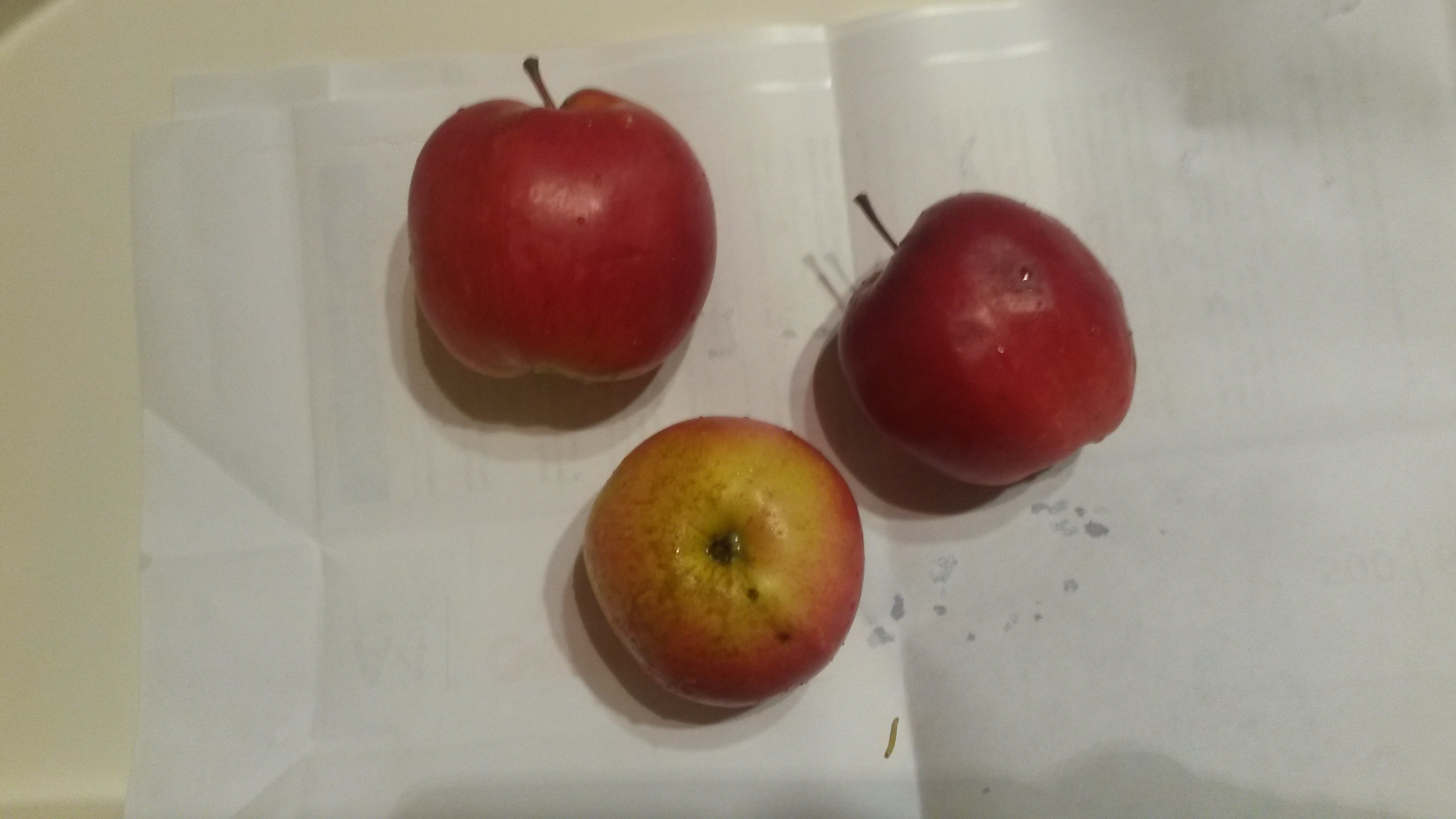 Здравствуйте. Помогите определить сорт яблони. Яблоки весом около 120 грамм. Само дерево очень здоровое, без парши. Покупали в сомнительном питомнике, но сорт совсем другой оказался. Каталог питомника тоже смотрела, но подобного сорта не нашла. Яблоки сняли в конц сентября. Сейчас они очень хорошего вкуса, довольно сладкие. Хранившиеся в холоде очень сочные. При разрезании аж льётся сок. Кислоты совсем немного. Возможно, им нужно ещё дойти. Угощали в эти выходные родственников, они сказали, что похожи на южные сорта, типа Джонатана по вкусу. Может у кого-то будут мысли, что за сорт?