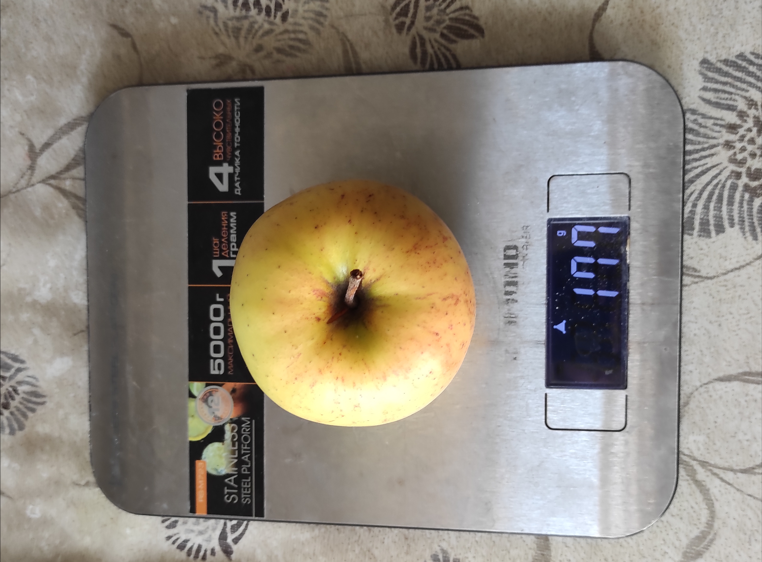 Яблоки не совсем мелкие. Поклеваное грамм 150 примерно. Форма вытянутая.