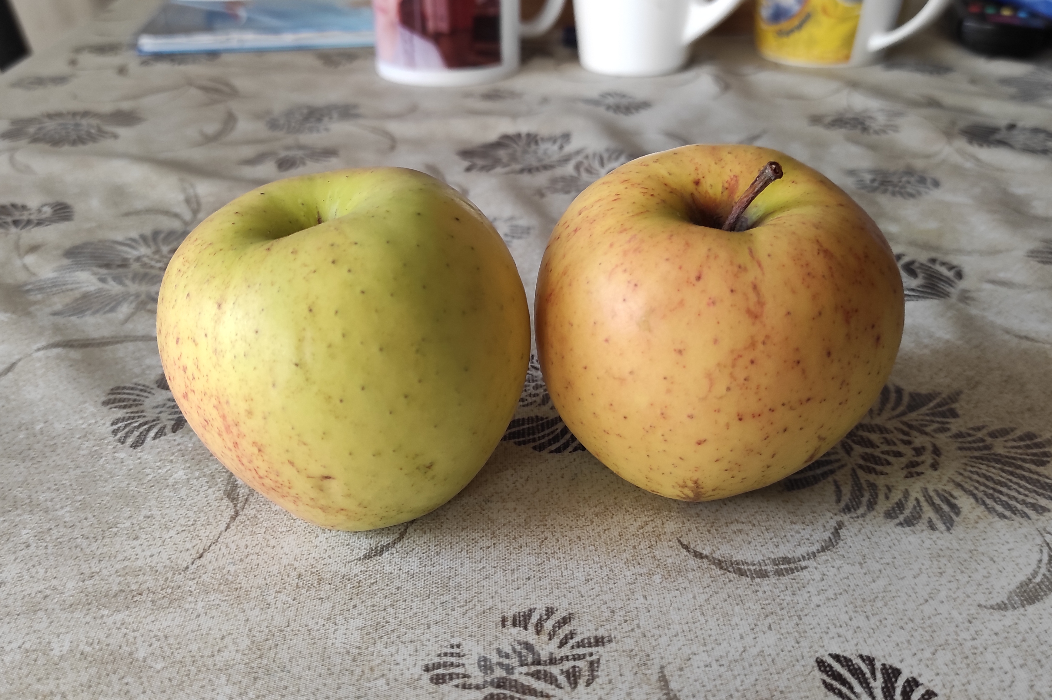 Угостили яблоками. Те, что посветлее, сладкие, без кислинки, мякоть чуть кремовая, хрустящая. Те, что потемнее, сладкие, без кислинки, ароматные, мякоть чуть кремовая, хрустящая.