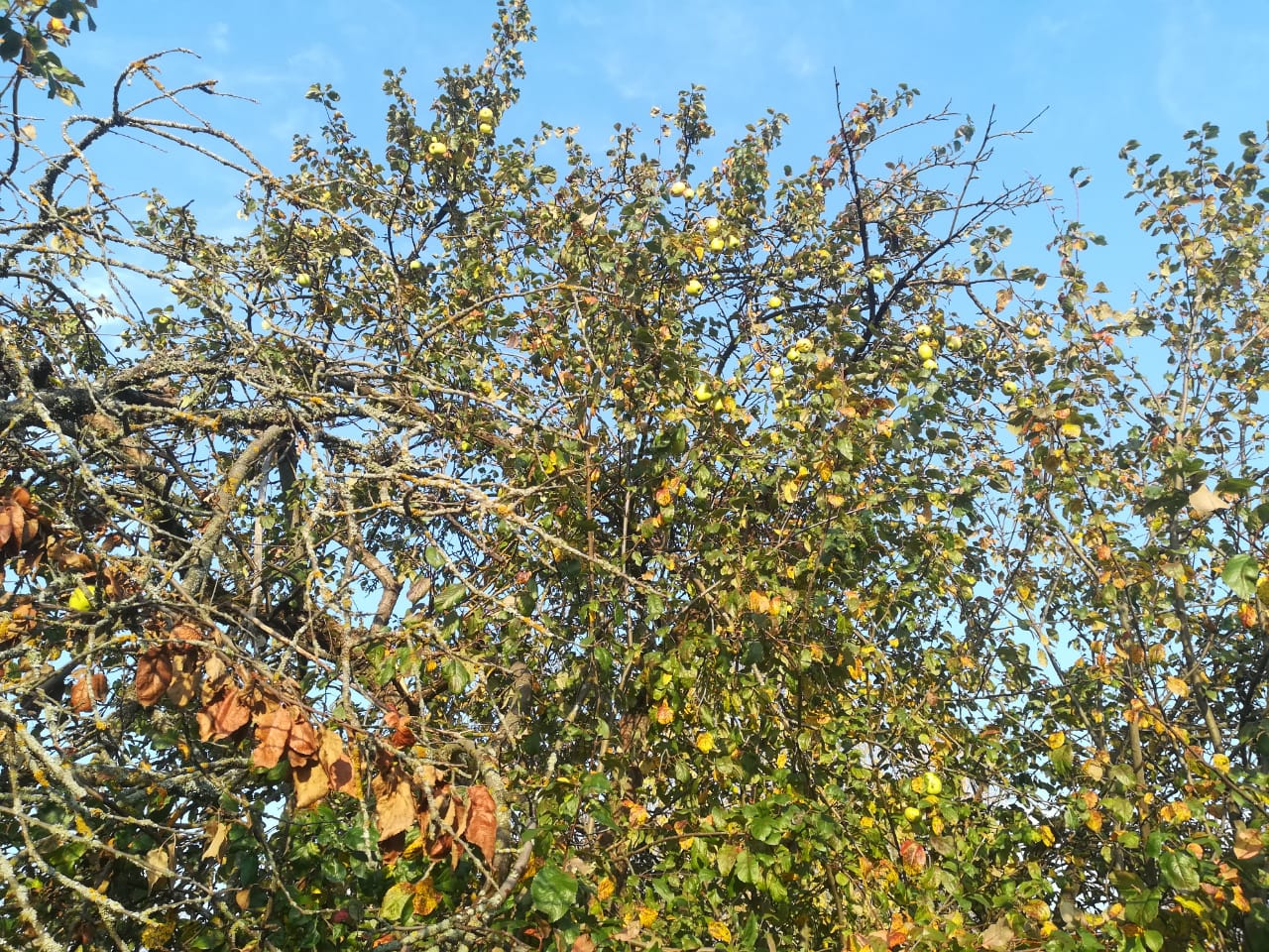 сейчас большинство яблонь стоят пустые, а она вся усыпана