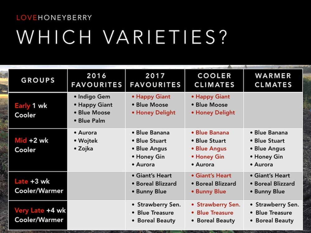 Насколько я понял, это таблица сортов жимолости, фаворитов продаж за 2016 и 2017 годы?
