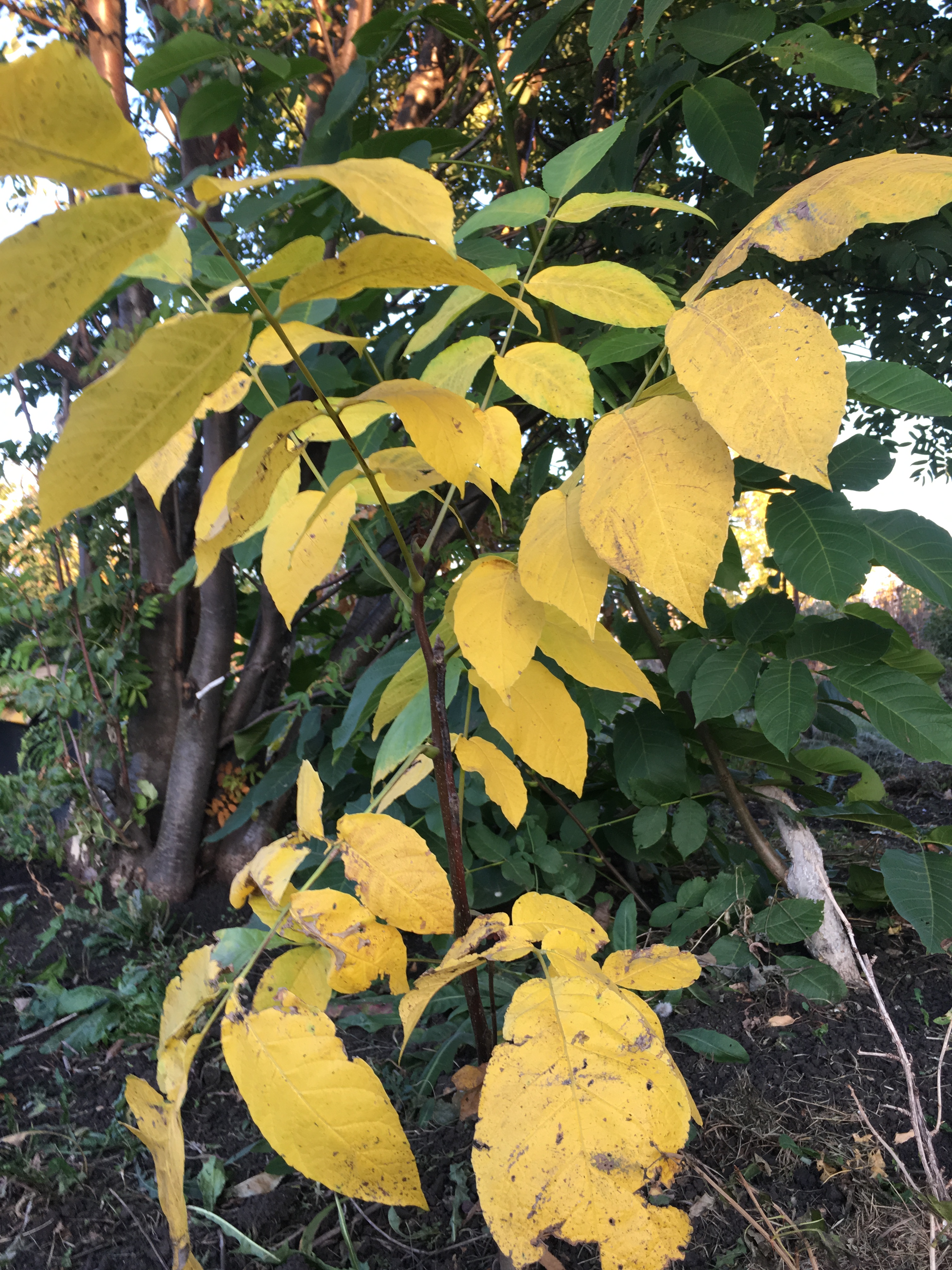 Пожелтели слегка черный орех в компании с сердцевидным.