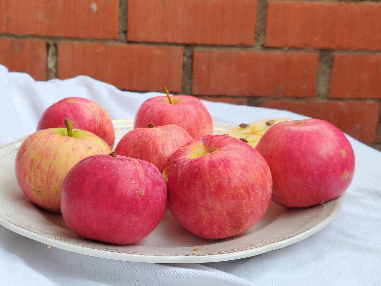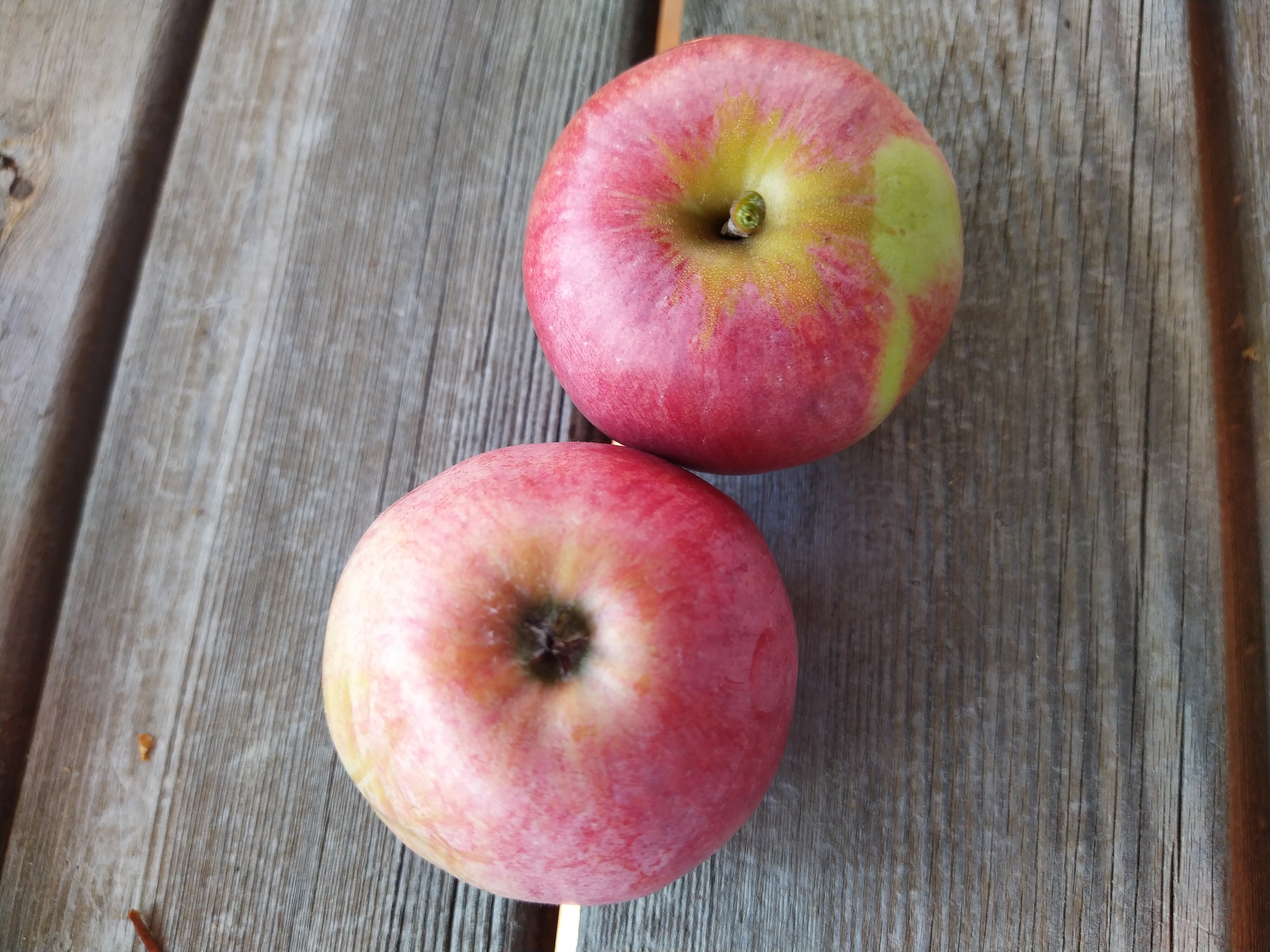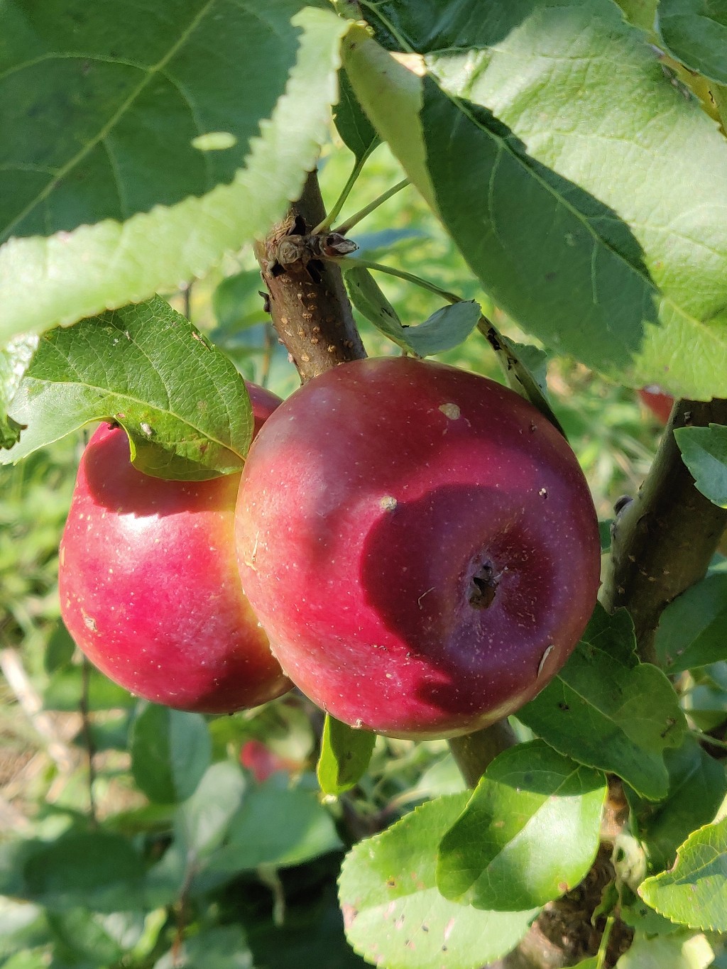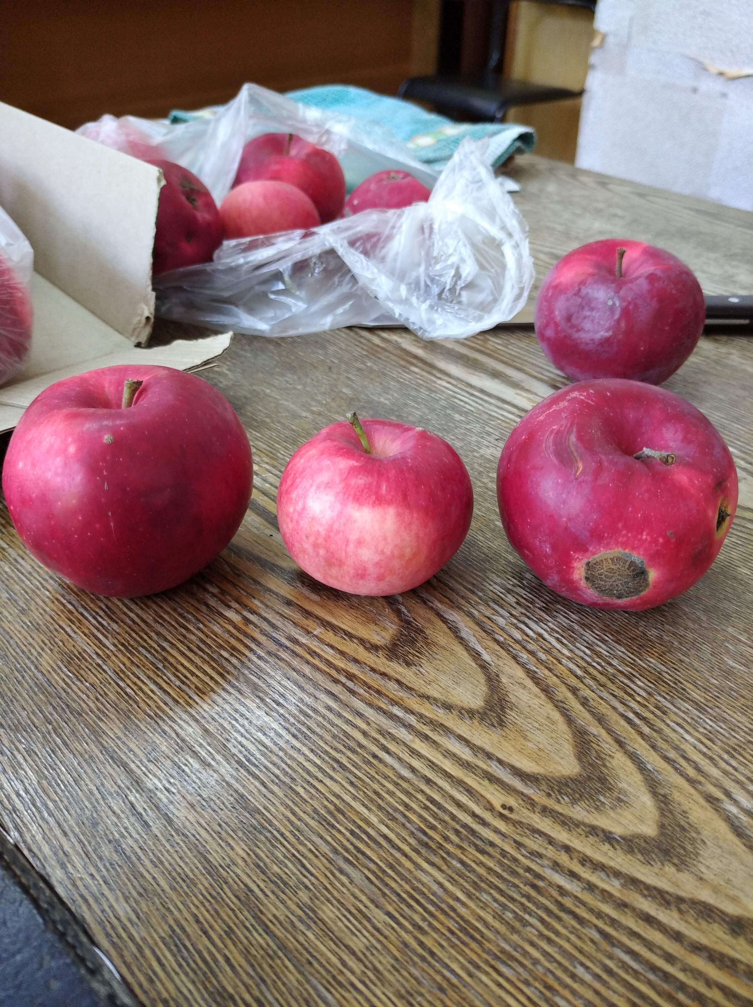 Сначала думал старая Грушовка Московская(дереву лет 50). Высота более 6 метров. Растет от земли тремя стволами. Не развалилась.Видимых зимних сильных повреждений особо не вижу. Выдерживает близкий УГВ. Плоды имеют сливающийся штриховый румянец бруснично-вишневого цвета увеличивающийся по мере созревания. Плоды слегка плоско-округлые. Мякоть даже у падалицы жёсткая в отличии от настоящей Грушовки, та и трёх дней не пролежит, если упадет - все в кашу. Эта по прежнему жесткая. Плодожоркой и паршой повреждена умерено. Диаметр плодов(похоже измельчали с возрастом дерева) в среднем около 6 см. Вкус насыщенно сладко-кислый с лёгкой терпкостью и пряностью. Аромат от пакета с яблоками сильный яблочный слегка пряный. Сорт явно не летний, хотя созрел и осыпается. Три недели назад были кислые, неделю назад начали резко созревать и осыпаться. Семечки темные, черно-коричневые, довольно крупные, слегка граненые.