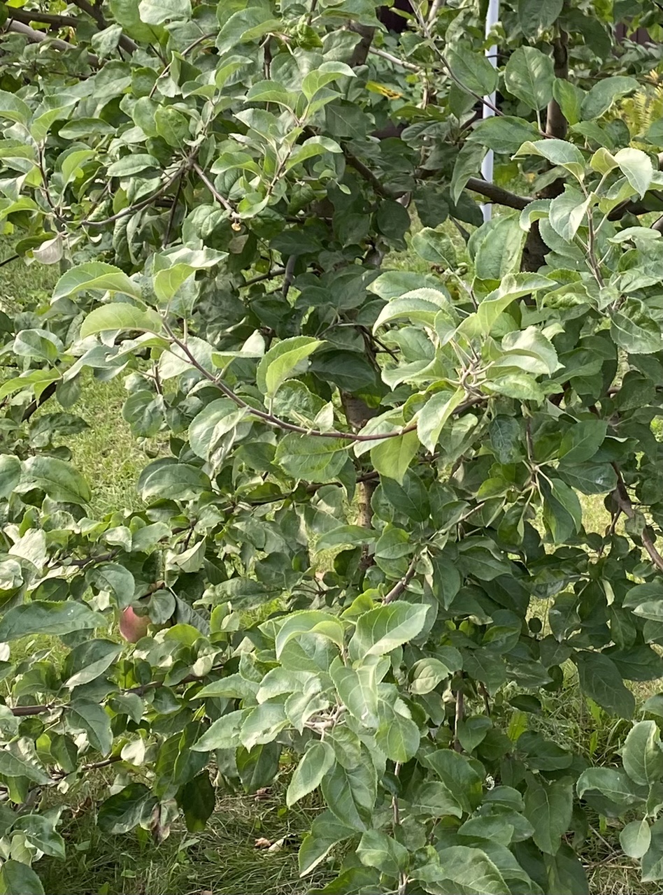 Похоже на Антоновку обыкновенную, возможно клон. Созрело явно раньше, возможно из-за жаркого лета. Ещё пару недель назад кисляк был, не укусишь. Сейчас нормальный вкус зрелой Антоновки с ветки с привкусом славянки. Начинают желтеть бочка. Какого либо сильного яблочного запаха Антоновки не чувствуется. Вот у Грушовки, да, чувствуется.
