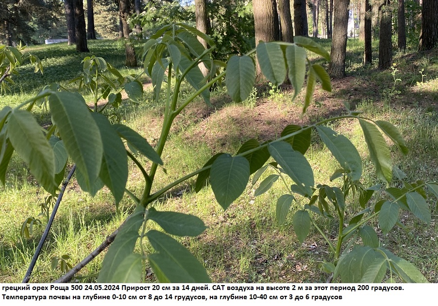 Аналогичный прирост веточек текущего года у грецких орехов в Луганске был в последних числах апреля, т.е. месяц назад.Виктор Михайлович_59 писал(а): ↑01.06.2024, 09:43 В Кингисеппе на 01.06.2024 у грецких орехов прирост веточек текущего года - до 40 см.