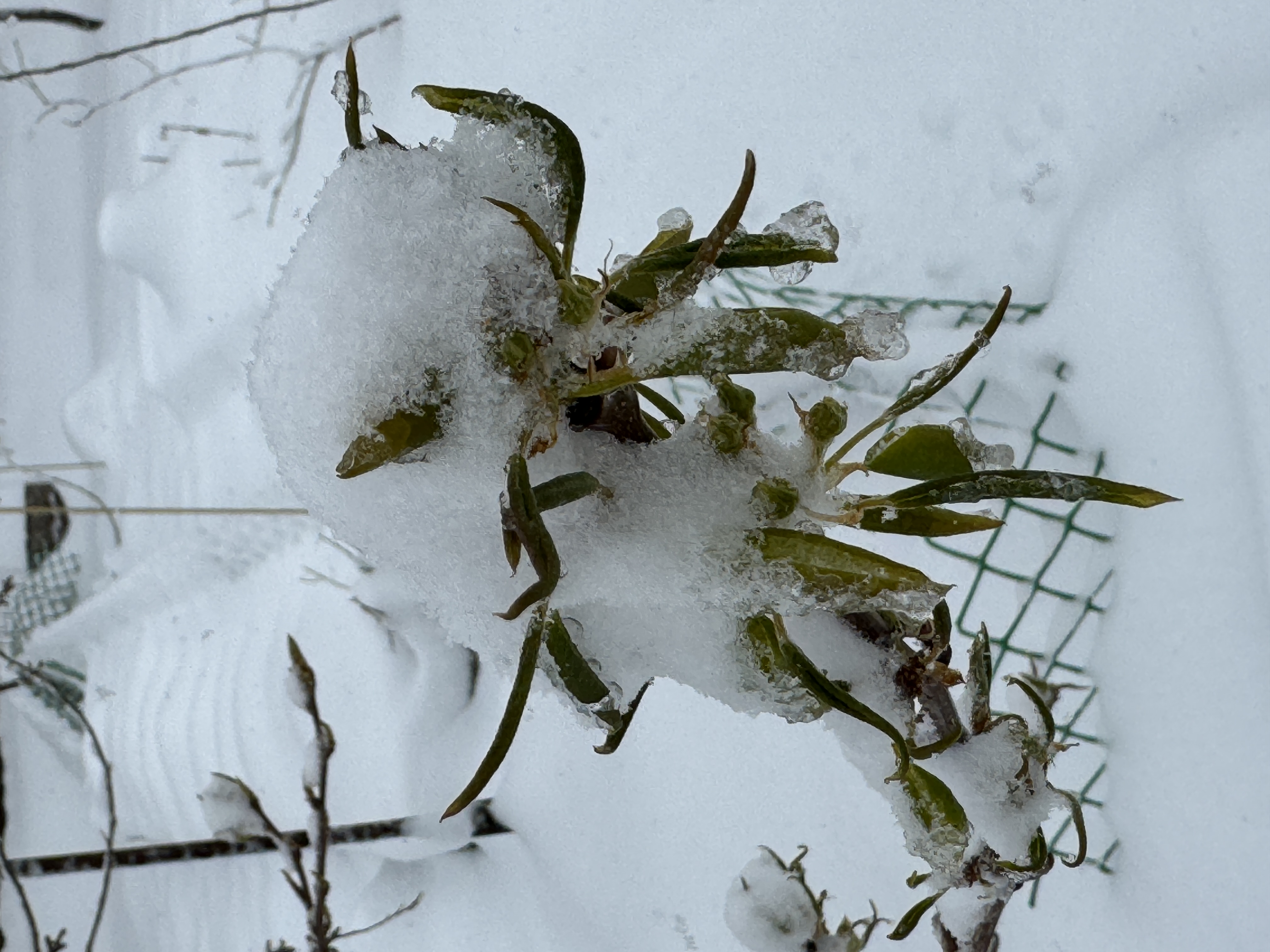 Черрикос замерз по уровень снега, в нижней части -живые побеги.