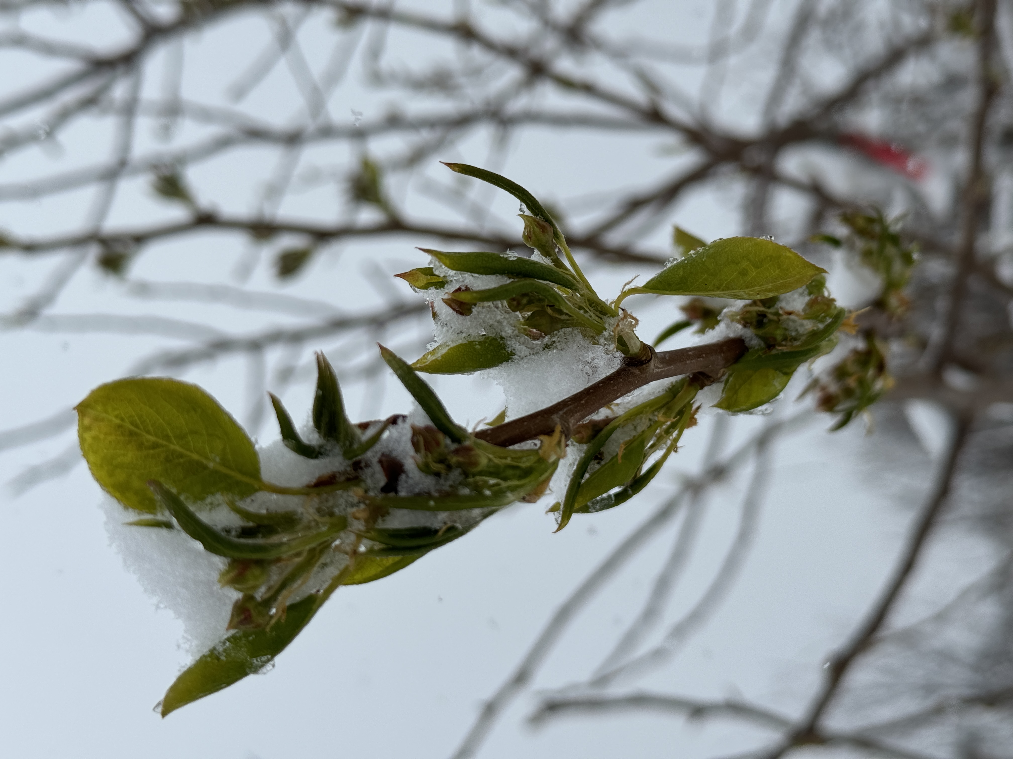 По уровень снега замерзла Амфора, почки на высоте 15-20 см пошли в рост.