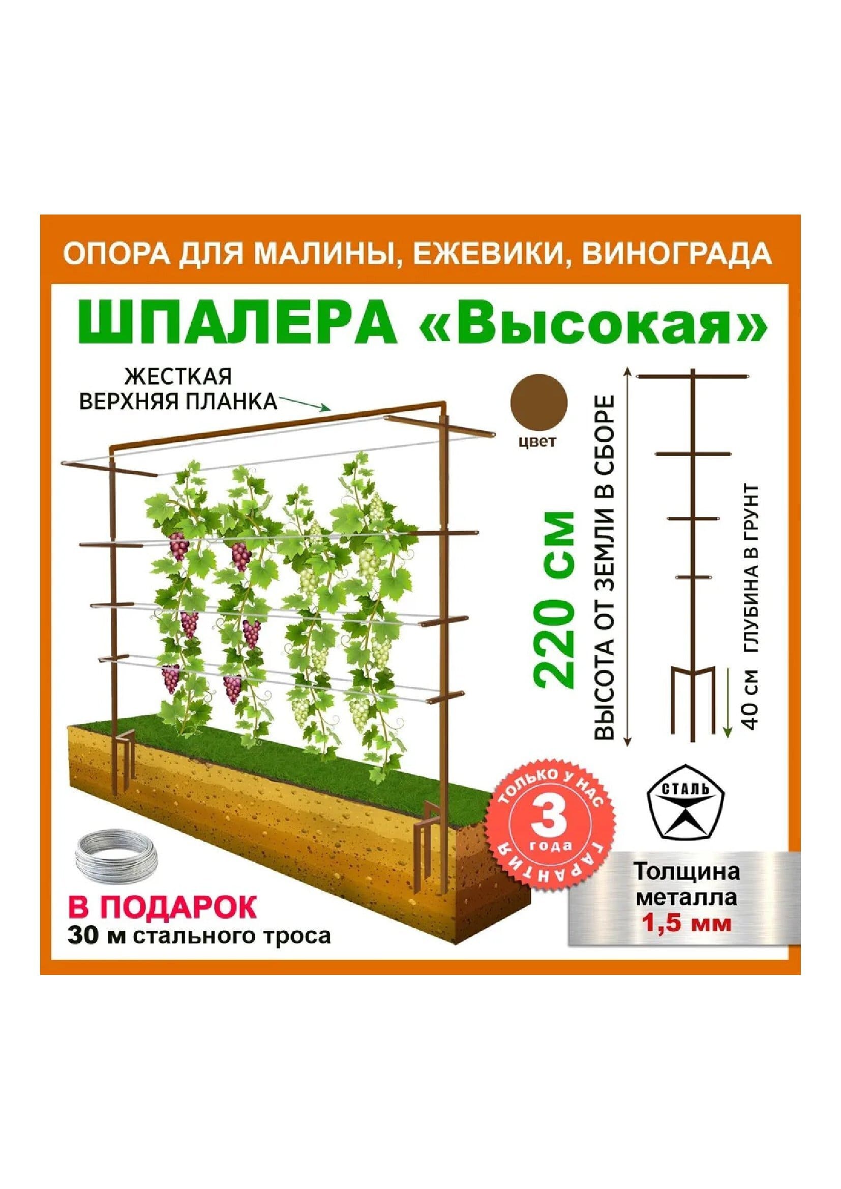 Более экономически целесообразно вместо верхней планки вбить якоря и к ним притянуть с помощью проволоки боковые столбы, особенно если шпалера длинная.