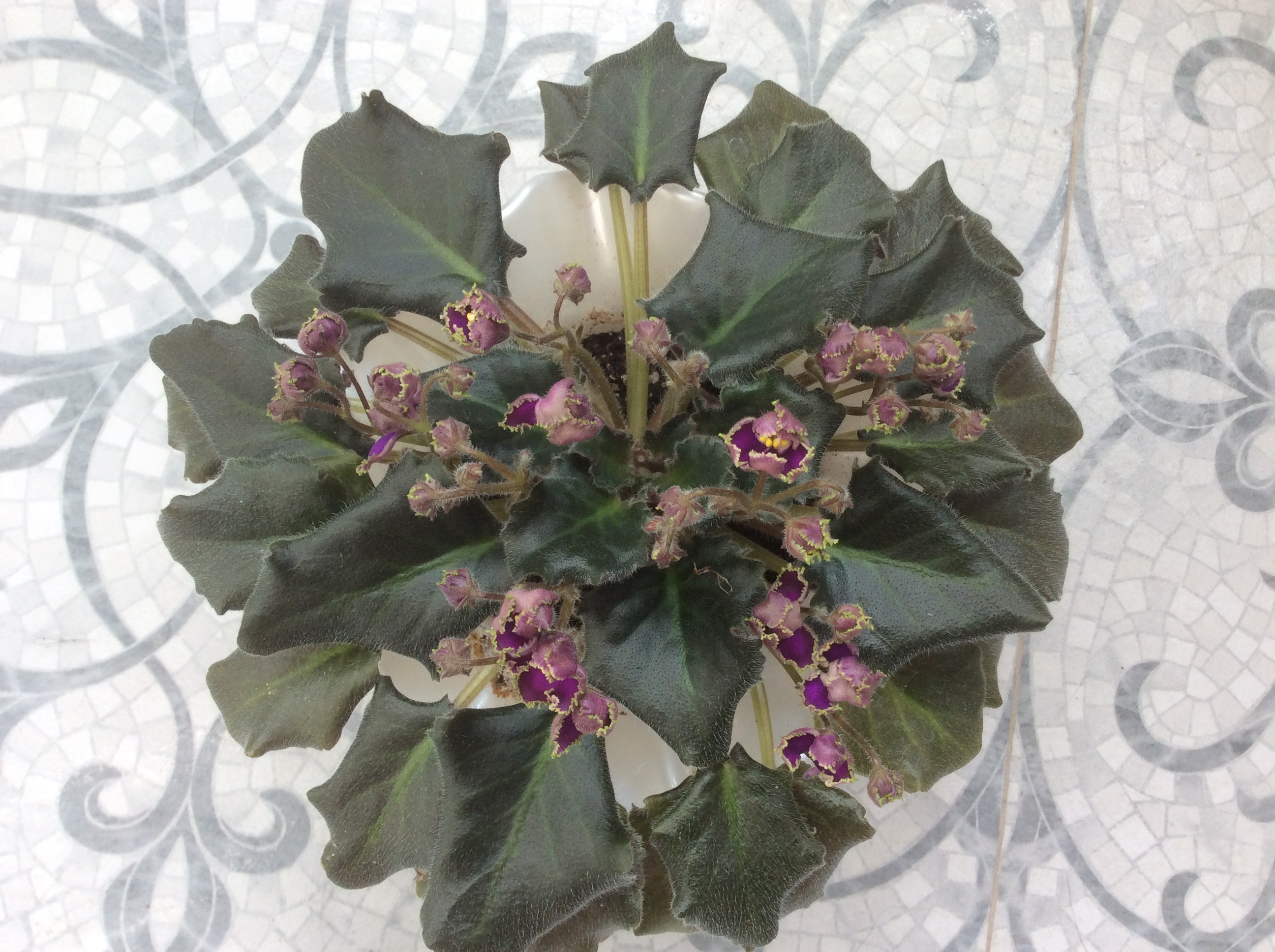 Твоя фиалка должна иметь красивые ровные листья. Кстати , не любит яркий свет.
