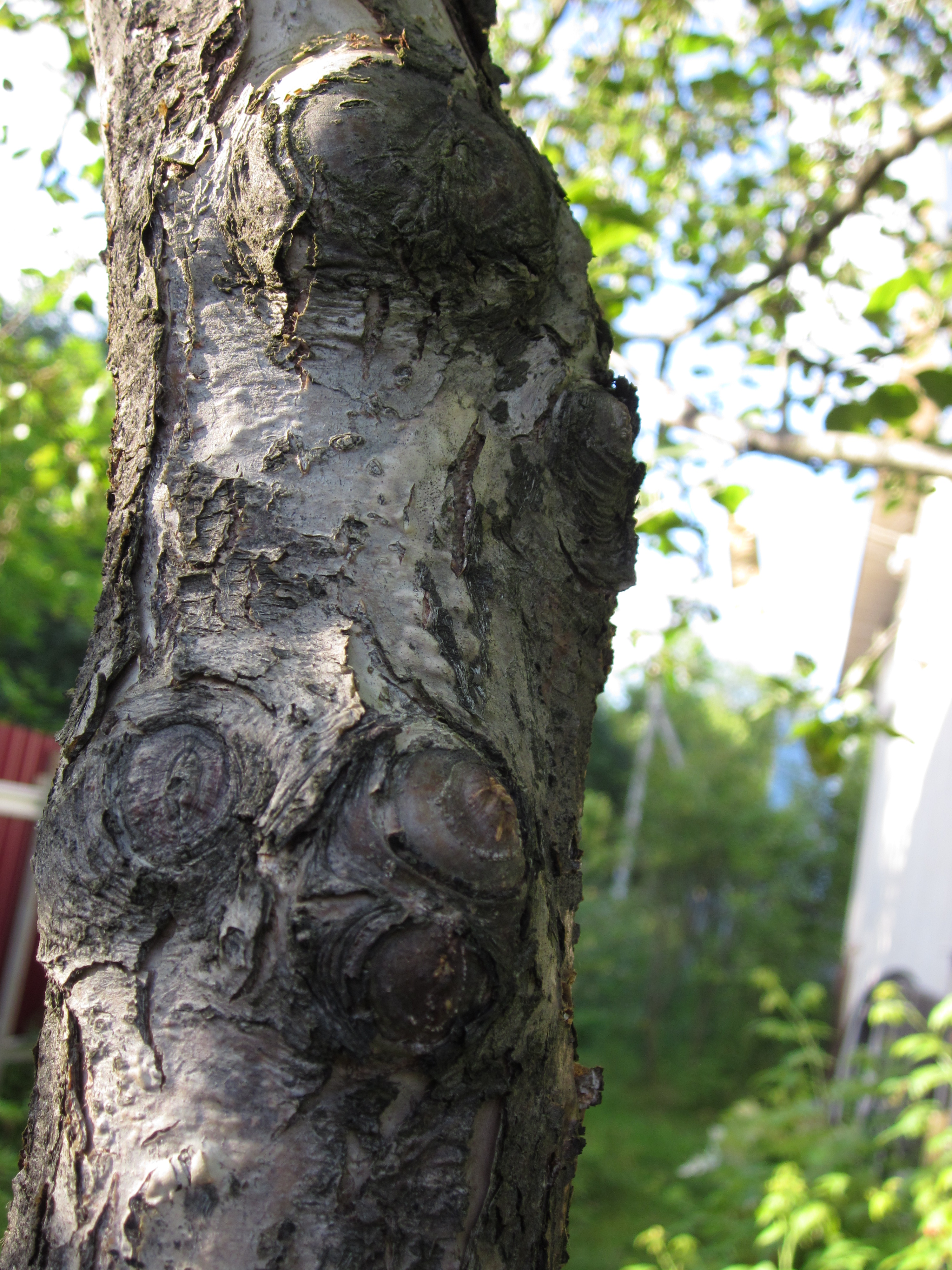 Краткий ликбез. Некоторые садоводы считают самопроисходящее растрескивание коры на плодовых в силу увеличения диаметра штамба и веток явлением плохим и берут процесс в свои руки, т.е. берут нож и наносят дереву раны. Дерево существо беззащитное, не может благодетеля ни укусить, ни лягнуть, ни сбежать от него и покорно принимает эту вивисекцию. А результатом может быть инфицирование раны, отмирание коры и даже гибель дерева. Еще есть такая отговорка, что эта процедура позволяет увеличить диаметр штамба, только зачем? Сломанных яблонь я не видел, дров нужно больше? Вы же сами заметили, что к осени все трещинки заживают. Ну только если руки чешутся.