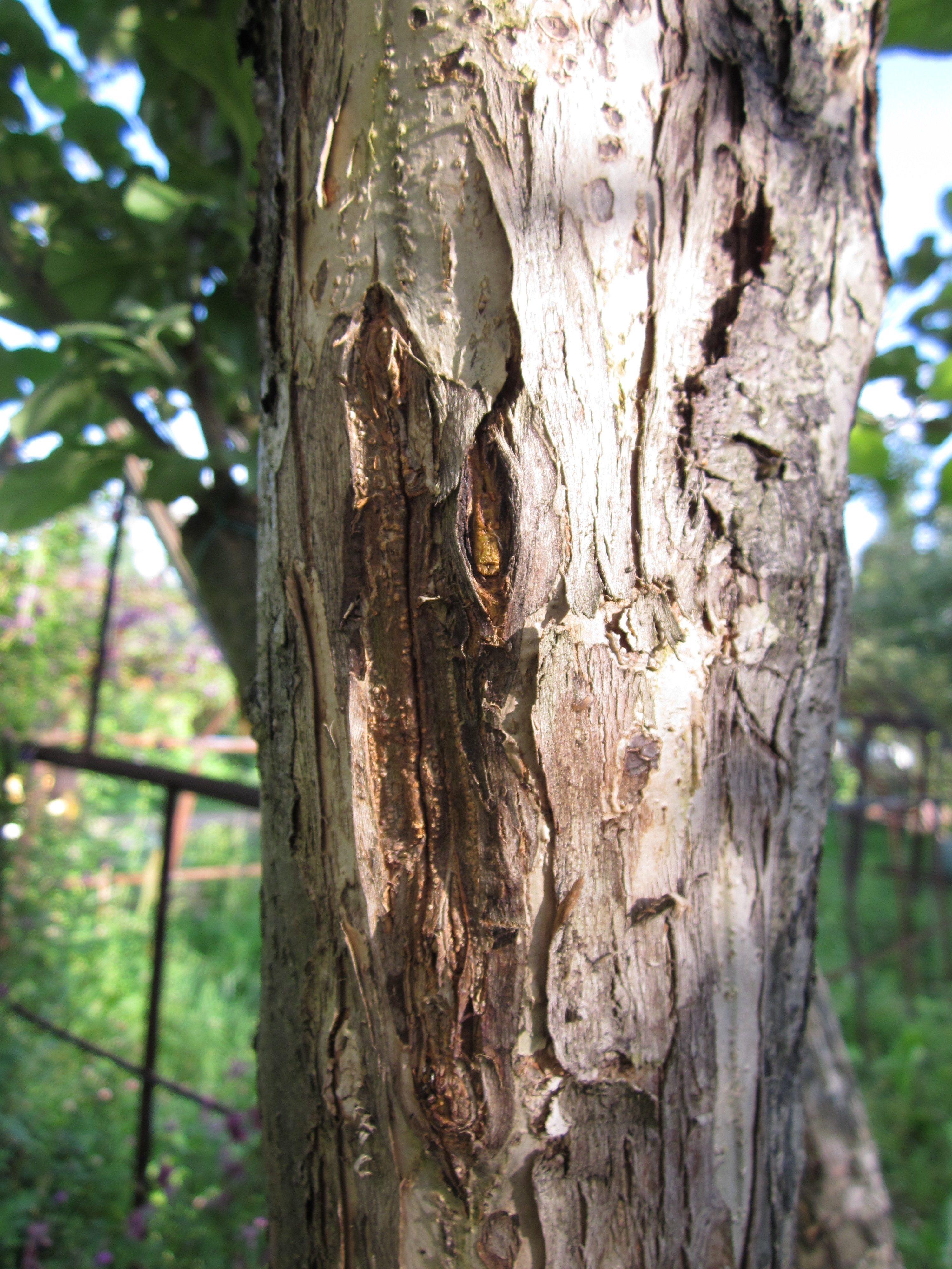 “Кора с трещинами – это природное (ударение мое) явление в процессе роста деревьев и кустарников. Трещины в нижней части ствола, – возможно, результат чередования периодов переувлажнения и засухи. Трещины в стволе должны быть либо замазаны, либо покрыты битумной краской, чтобы предотвратить заражение грибными болезнями ” ( смотрите выше русский вариант того же бреда )