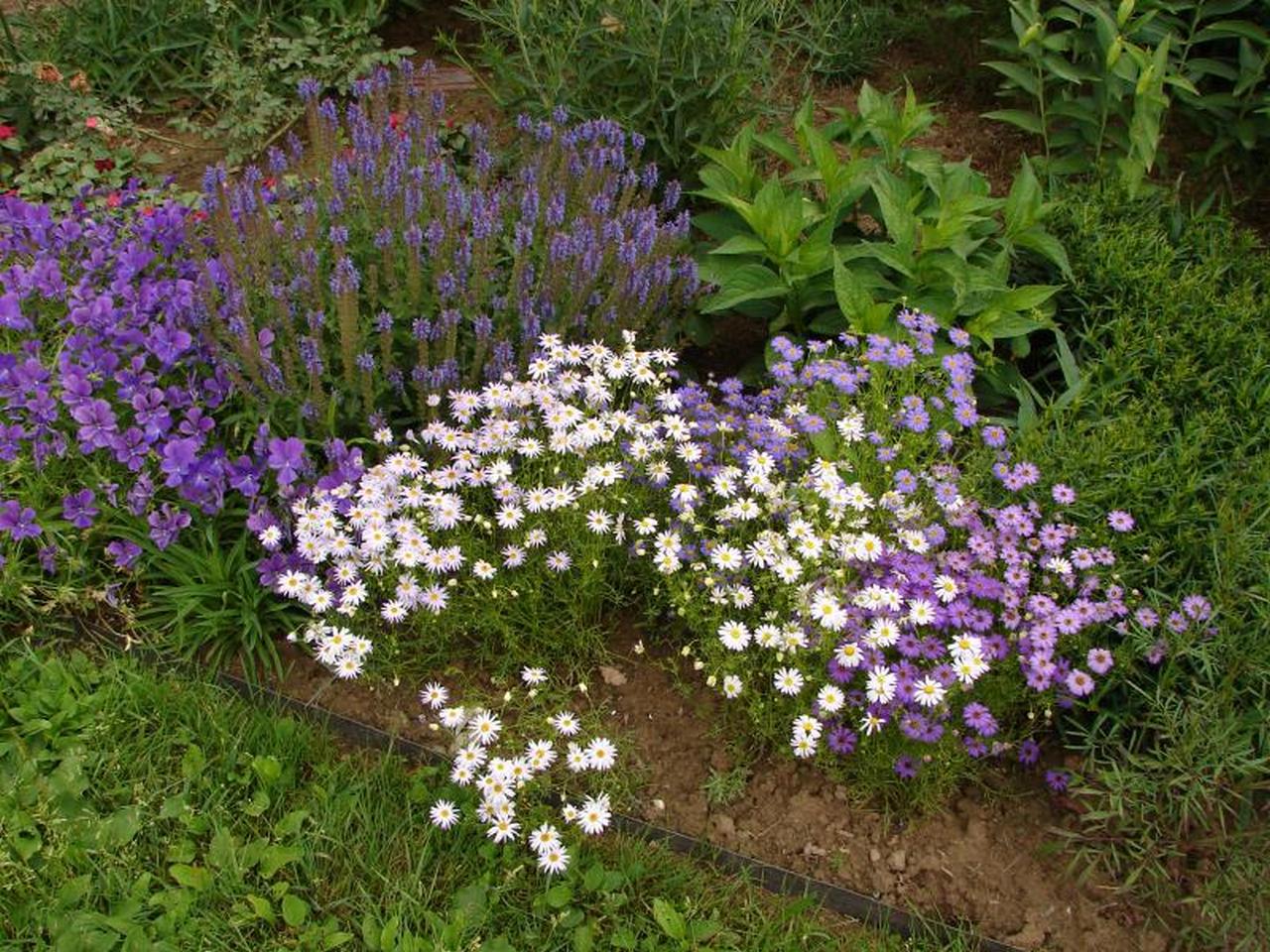 По краю - злаки красиво, как на фото выше, почвопокровные, а я люблю гвоздичку седую