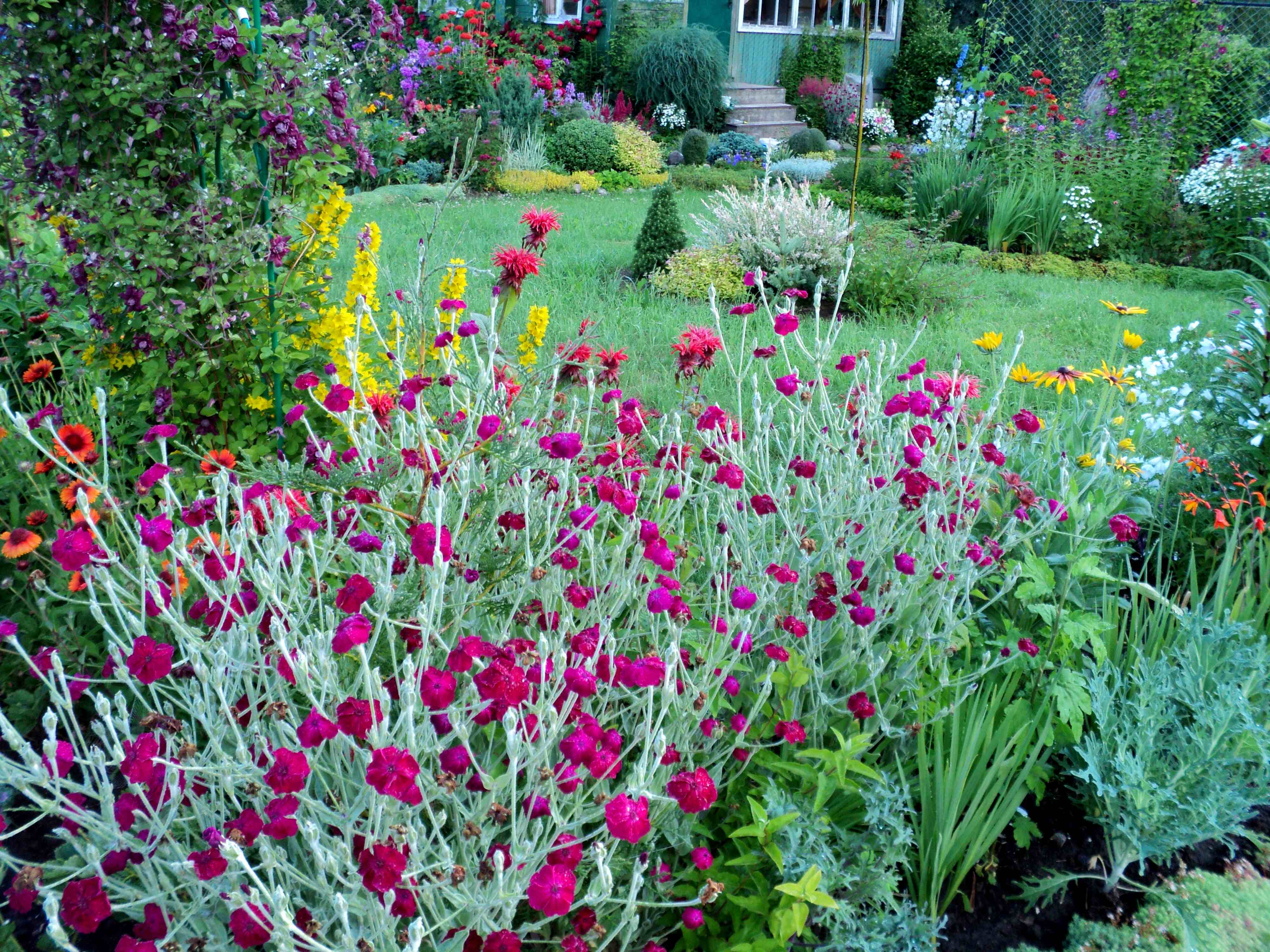 Кстати, с розами вместе цветёт (и дальше до осени, если срезать отцветочки) лихнис корончатый