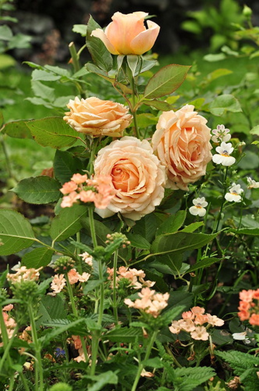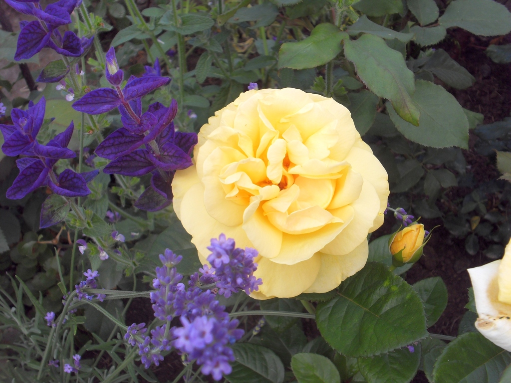 Да, насчёт лаванды, мне больше нравятся сочные тона, поэтому кажется, что та лаванда бледновата для тех роз, её лучше к более ярким и тёмным... Вот здесь есть тона, о чём я говорю: и роза почти та, между ними яркость, а ниже в углу лаванда. А, если лаванду вплотную к розе, то роза будет казаться бледнее. Не так ли? Но это нужно определиться, какого эффекта хочешь. Если всё очень-очень спокойно, то - да, лаванда к розе, перед ней, более низким ярусом, а можно и рядом... между розами - как позволяет место.