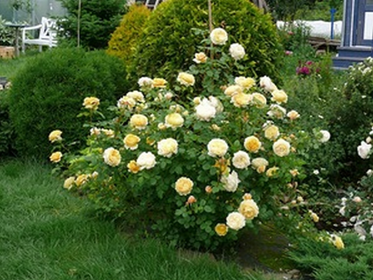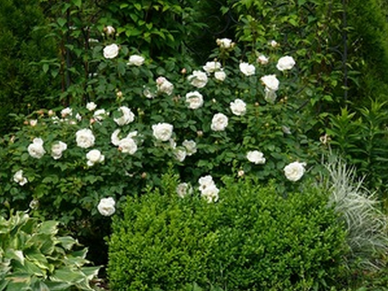 А вообще самые лучшие соседи розам - хвойные и зелёные кусты