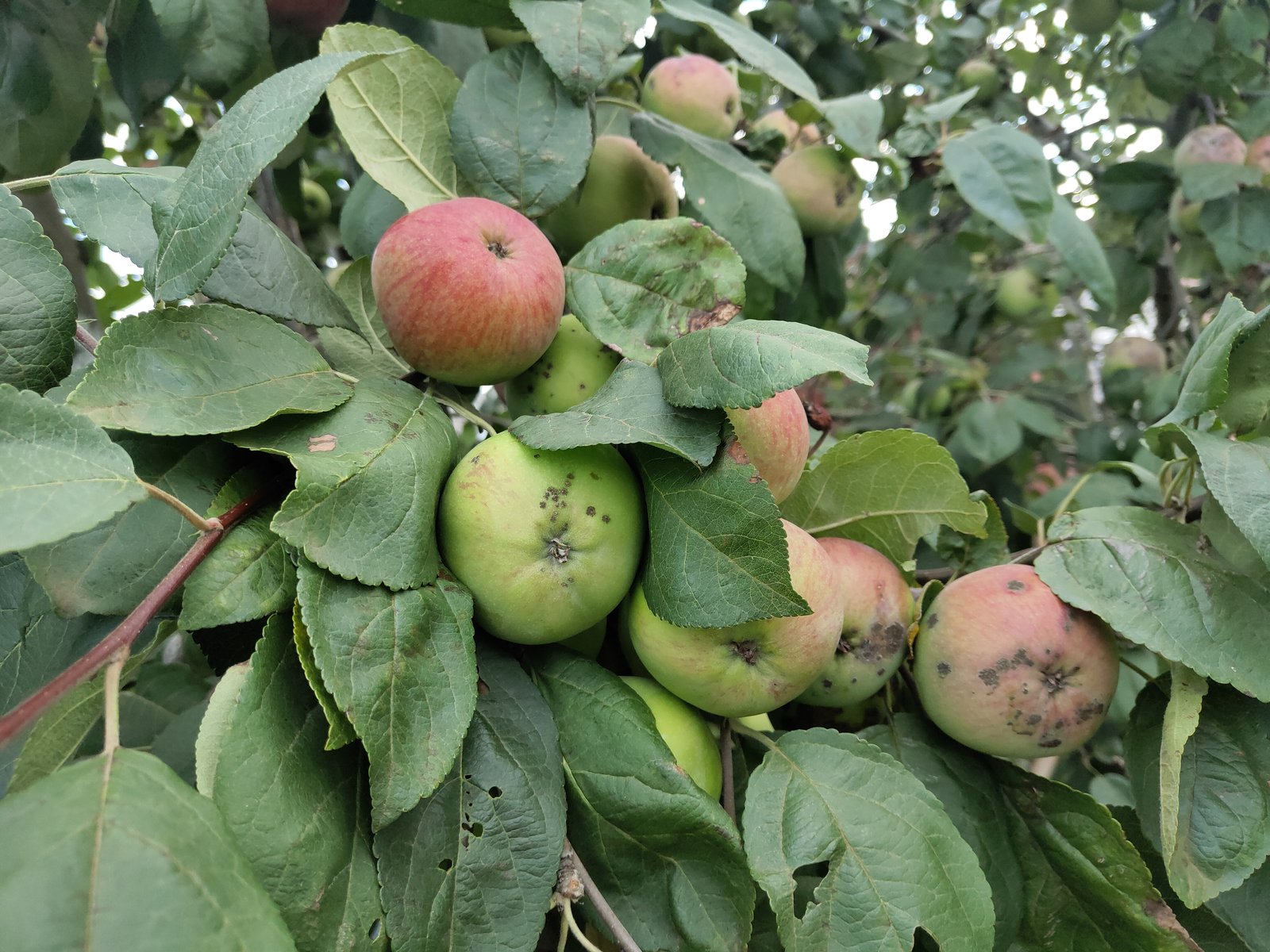 Несмотря на провальное начало лета и холодный мокрый май,яблоки есть.Минимальными обработками биопрепаратами почти удалось уйти от парши и минимизировать плодовую гниль.Честно говоря-не ожидал такого результата.