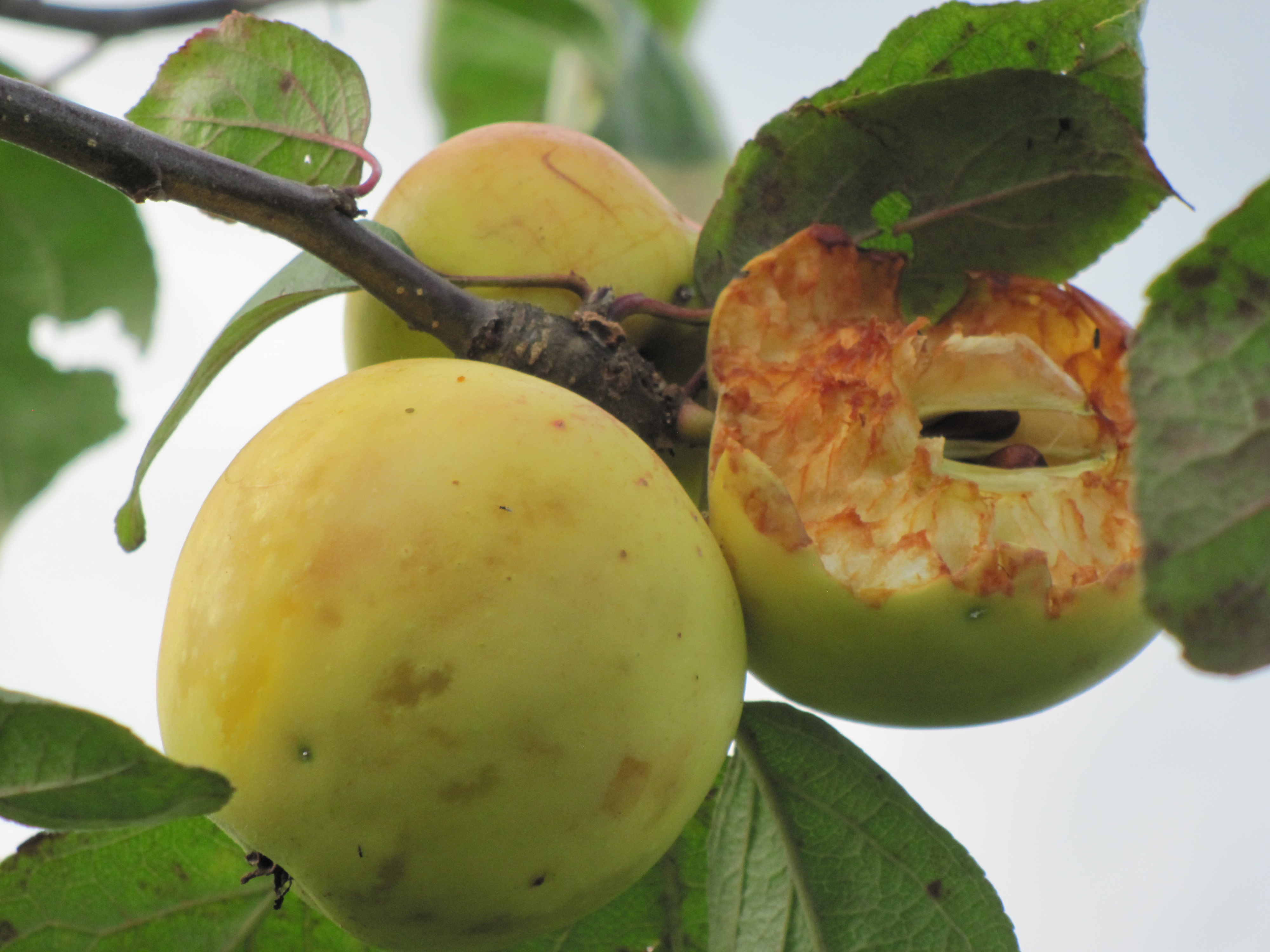 Забыл еще об одной напасти - птицы. Ягоды все сожрали, теперь принялись за яблоки.