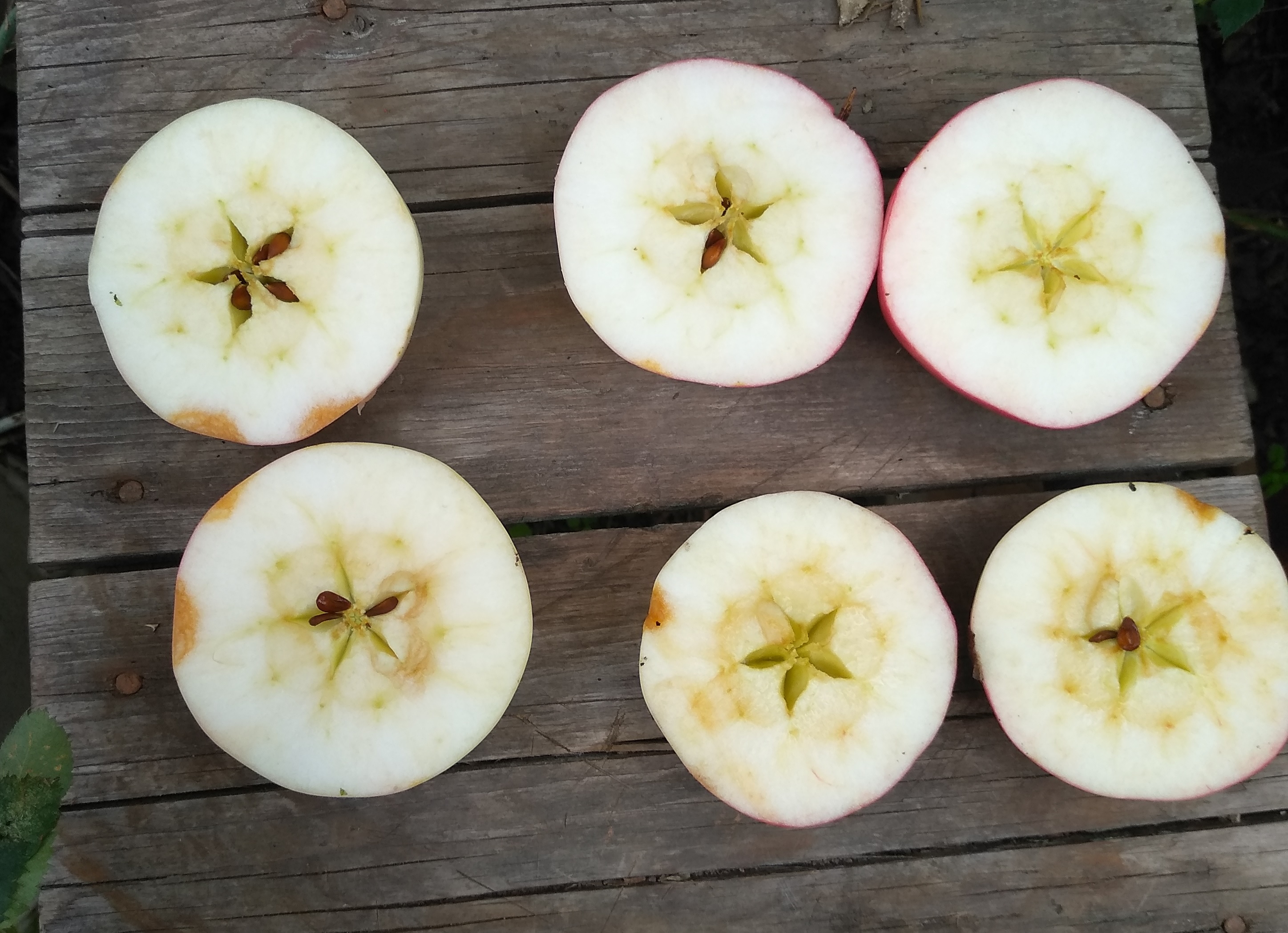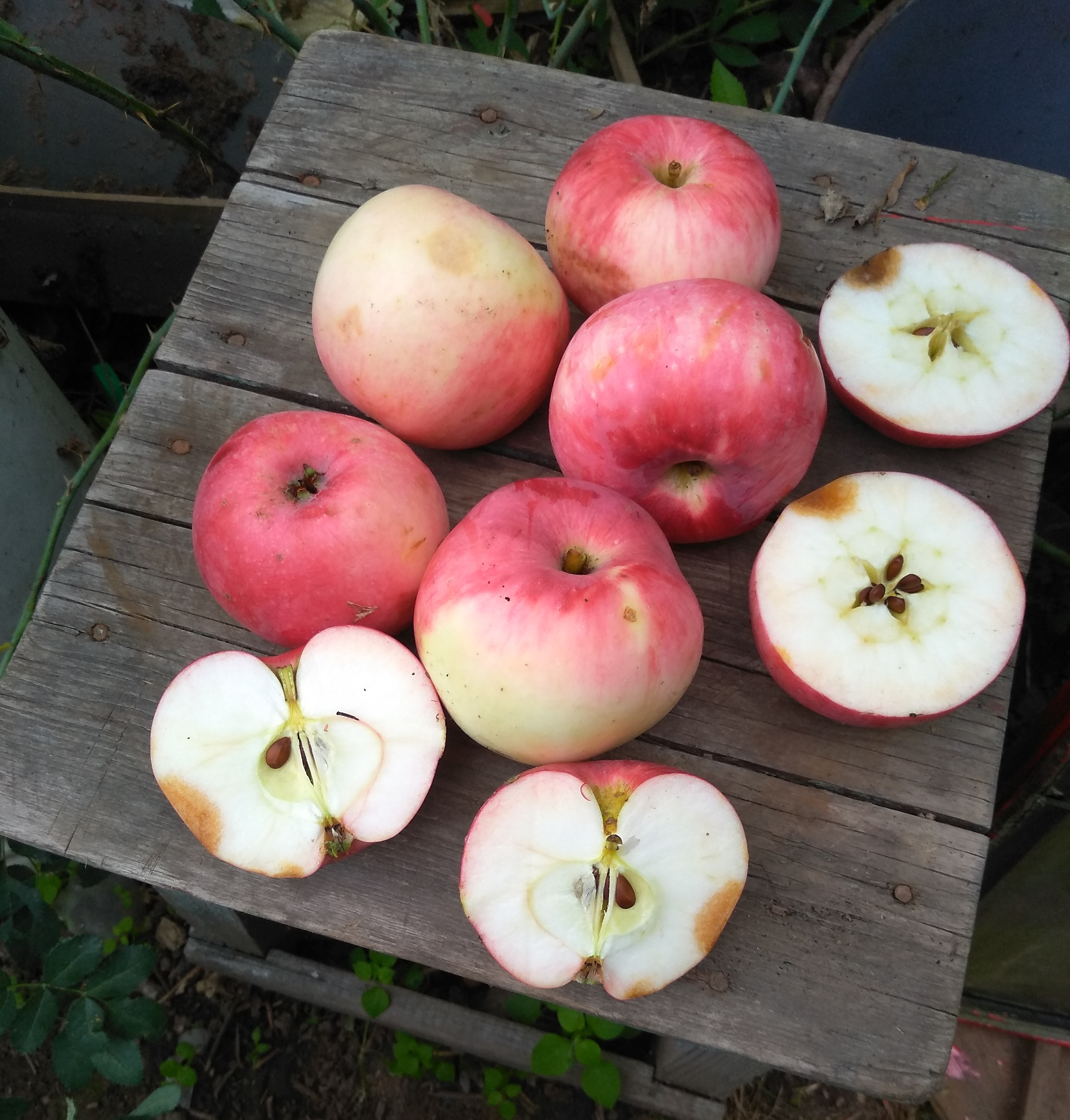Эвелин, знал бы я. В 2000 купили домик с деревьями столетними от которых даже память стерлась. Потом на рынке покупали саженцы (несколько саженцев я даже из Новокузнецка привез) и сажали. Что выросло, то выросло. В 2019 году у дочери посадил саженцы, но все оказались летними сортами. В этом году перепривил. В прошлом году посадил еще 4 сорта Моди, Пинова, Гая и Фуджион. Сигналок пока не было. А на фото, то, что сегодня последние собрал. Большое желтое уже рыхловатое, красное тоже. А те, что помельче заложены в погреб. Там еще один сорт. А может и то, что справа на нижней фотке.